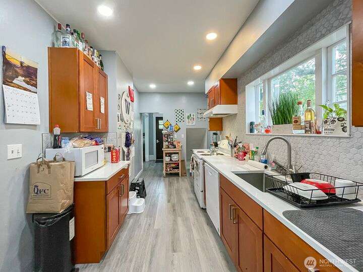 Builders & DADU folks see level 50x44 backyard, 12' sideyards, gentle 9'/56' rise from front: maybe retain 24x36' house & add new? Landlords see strong UW $/m, yrs of use UW Women's Crew Team, daily downhill bike glide to Husky Shellhouses & Stadium. Released $7000/m to Aug 2026, tenants pay utils. 2012 Reno, 2016 Remodel, 2022 Reno. Labor of love true marble trim & pillars: photos 2&3,4&5,6&7 show prior liv/din/fam rm, then pro temp walls for bdrm use. White'n Tan Quartz Maple Shaker Kitchen, grandma's pink bath, 2016 new 2nd Kit & 7th/8th BR's. Landlords get exc interior cond, lots new drywall/elec/plumb, all 8-BR's nice & safe. More Info Avail. Before you buy, stroll west on NE 60th Bridge to 6500 Ravenna District, forests & streams.