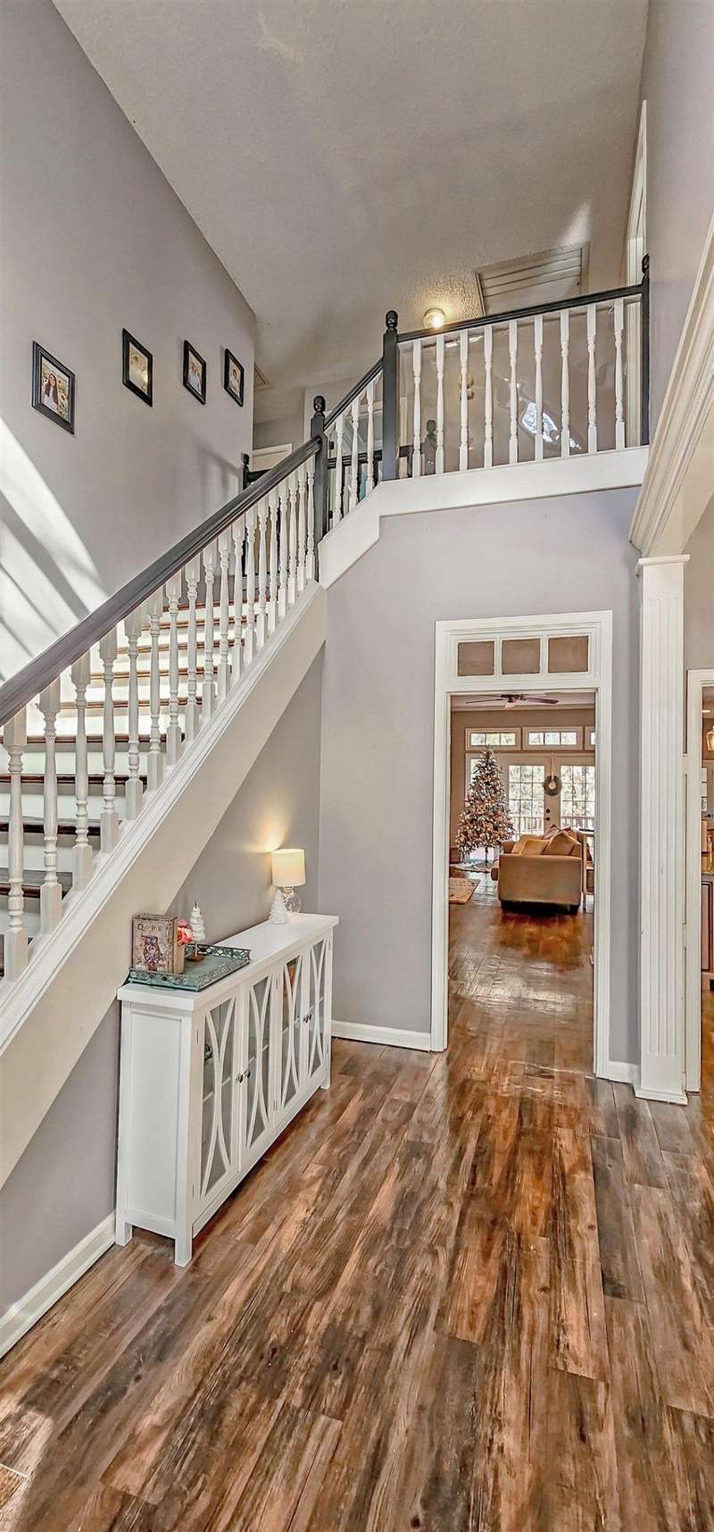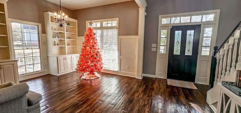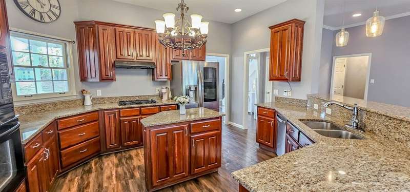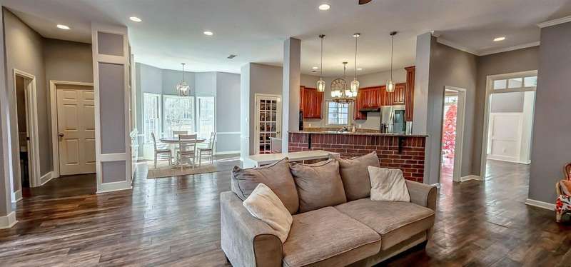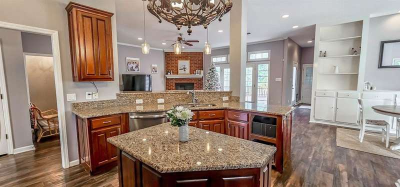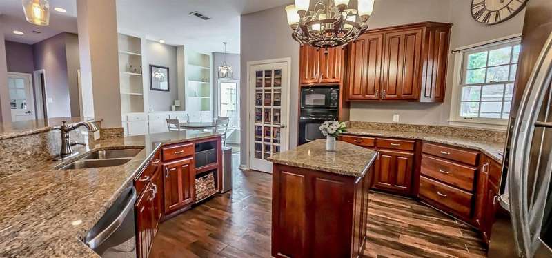 BIG ADJ OPEN HOUSE SAT OCT 4 1-3 pm Nestled on 1.13 peaceful acres under towering shade trees, this stunning country home blends rural charm with modern convenience. The wrap-around porch invites you to relax and enjoy the serenity of the outdoors. Inside, the 2-story foyer showcases extensive trim, smooth ceilings, and a spacious dining area with custom built-ins. An office just off the foyer offers lovely views of the front yard. The family room, featuring a gas log fireplace, opens to a kitchen equipped with granite countertops, stainless steel appliances, and an island. The downstairs primary suite includes dual vanities, a jetted tub, a walk-in shower, and a large closet. Upstairs, the home offers two distinct living areas: one wing with 3 bedrooms and 2 full baths, and the other with a bedroom and bonus room, ideal for a game room or guest suite. The 3-car garage, large back deck, and above-ground pool provide plenty of space. Seller is offering $10k flooring Allowance