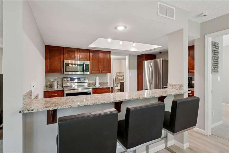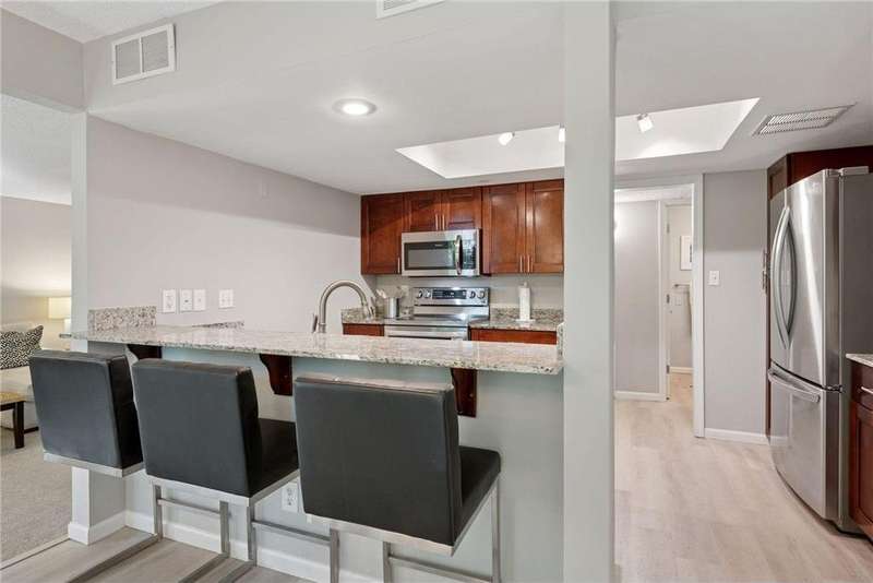 Beautifully renovated 2 bedroom/ 2 bath unit located on the south facing side of the building and nestled in the trees. This lovely turnkey unit features a living room w/ cozy fireplace and adjoining access to the screen in porch. The renovated kitchen has a re-designed floor plan that offers great usability including a breakfast bar that opens to the dining area. The primary suite features a spacious bedroom with two sets of closing including a walk-in and also a renovated 3/4 ensuite bath. The 2nd bedroom and guest bath are perfect for guests. The storage closet is currently used as a clever pocket office. IN unit laundry. The Edina West complex has so many amenities for its owners: indoor and outdoor pools, tennis courts, patio/grilling areas and so much more. Easy access to shopping, dining, parks and freeway access.