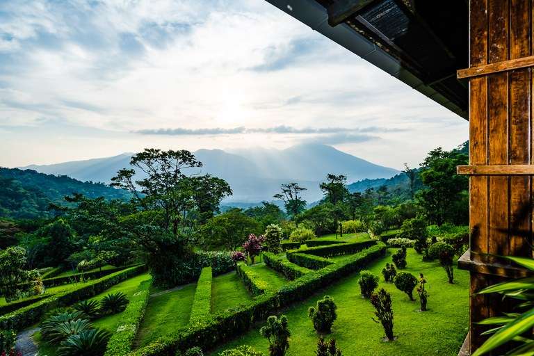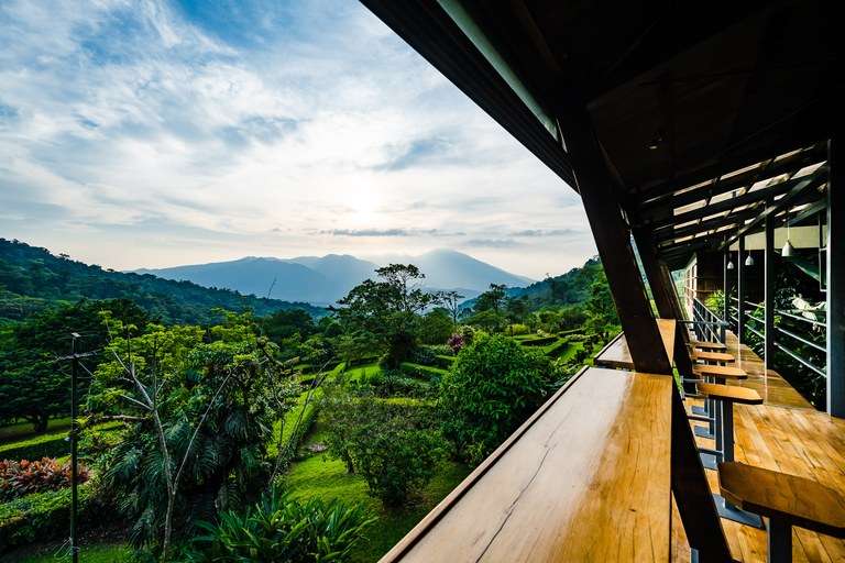 The lodge itself welcomes guests with its stunning vaulted wood ceilings, an indoor arboretum, and inviting lounge areas that embrace the surrounding nature. The unique architecture harmonizes seamlessly with the landscape, offering spaces for visitors to relax in the observation lounge, engage in birdwatching, or marvel at the breathtaking views of the volcanoes and mesmerizing sunsets.