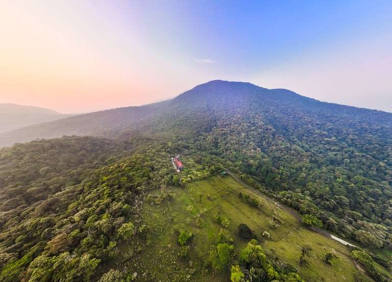 Nestled between two magnificent volcanoes, Celeste Mountain Lodge encompasses 17 acres of prime land, currently thriving as a successful lodge with the exciting potential to transform into a private eco-reserve. This estate offers ten acres preserved as a breathtaking rainforest reserve complete with hiking trails, complemented by five acres of lush, manicured gardens. Located in one of the most biodiverse microclimates in all of Costa Rica, the lodge sits at an elevation of 2,500 feet above sea level, where it enjoys year-round spring-like weather amidst the unique transition zone between rainforests and cloud forests.