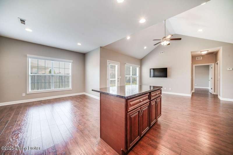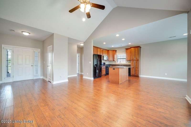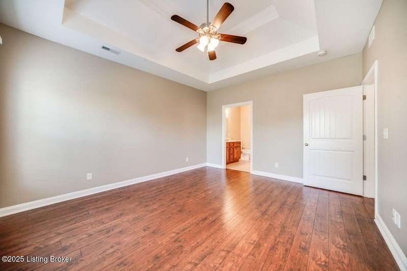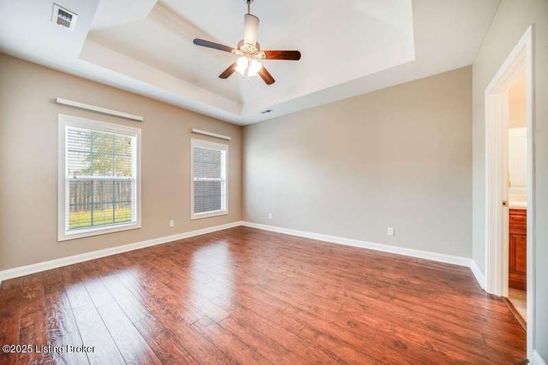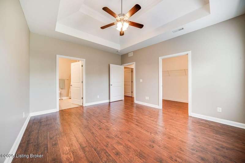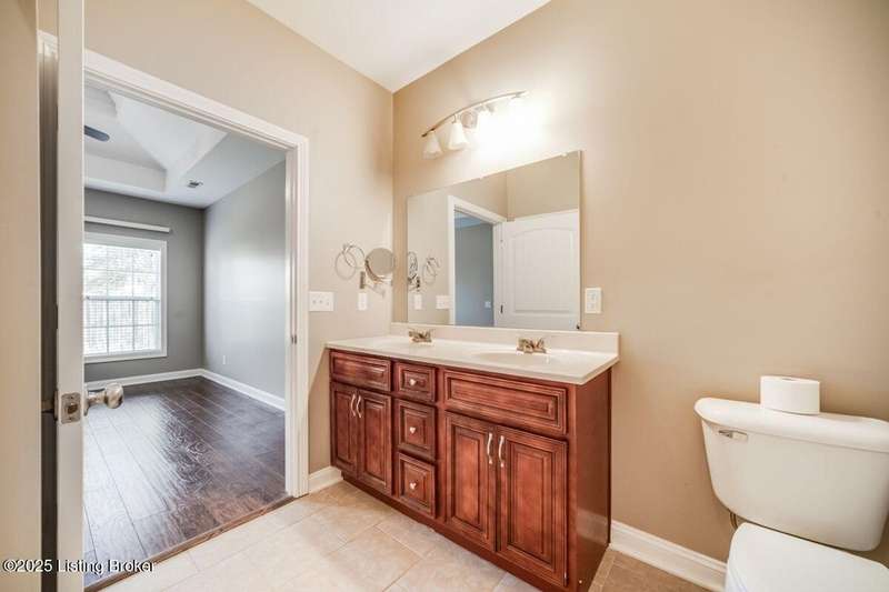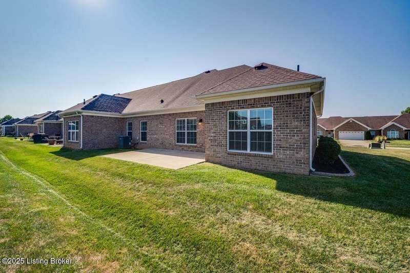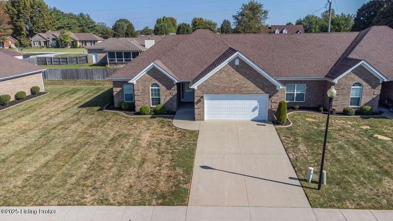 Welcome to this quiet, move-in ready, all-brick patio home in the Terrace of Twelve Oaks. Less than a mile to Bardstown Rd and 8 miles to the Gene Snyder. This single-story, split floor plan layout provides 2 bedrooms and 2 full baths. Enjoy a peaceful private back patio just off the great room. The great room, with vaulted ceiling, flows freely into the kitchen and dining area. The kitchen features stylish cabinetry and granite countertops. Durable wood-laminate flooring runs throughout the home. The primary suite features a tray ceiling, huge walk-in closet, and spacious bath; the front bedroom also boasts a vaulted ceiling and spacious bathroom. A large laundry room with its full closet leads into the two car garage. Lawncare is maintenance takes care of this!