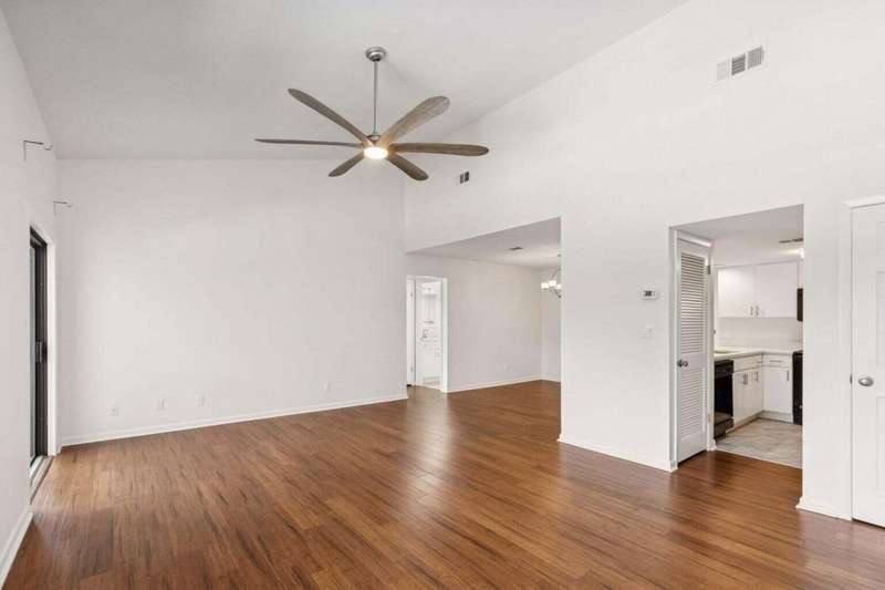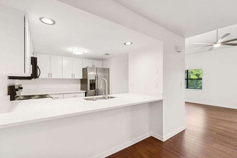 Location, location, location! Across from the bay and just 2.5 miles to Henderson Beach State Park, this spacious top-floor 1BR (approx. 1,055 SF) in a quiet 8-unit community is a standout. Enjoy a soaring ~20' vaulted great room, hand-scraped bamboo floors, fresh neutral paint, and a ducted/heated sunroom?perfect as an office, lounge, or flex guest space. The kitchen and bath feature matching quartz countertops, new stainless sink, and Delta fixtures; the bath also boasts a cast-iron/porcelain tub with new surround and vanity. Storage is easy with an oversized walk-in closet (plus loft potential above kitchen/dining?buyer to verify). Building updates include full exterior repaint and a new 30-year metal roof (2024). Minutes to public beach access, shopping, and the new Publix.