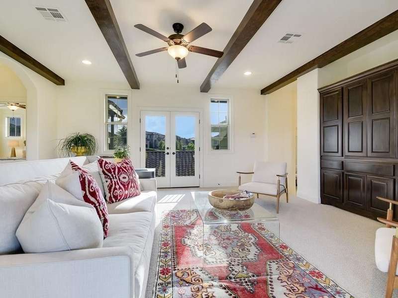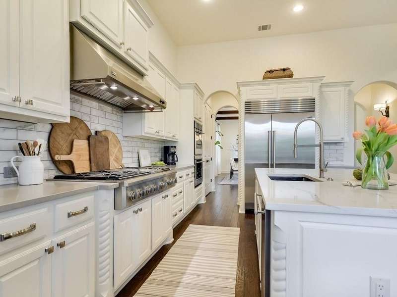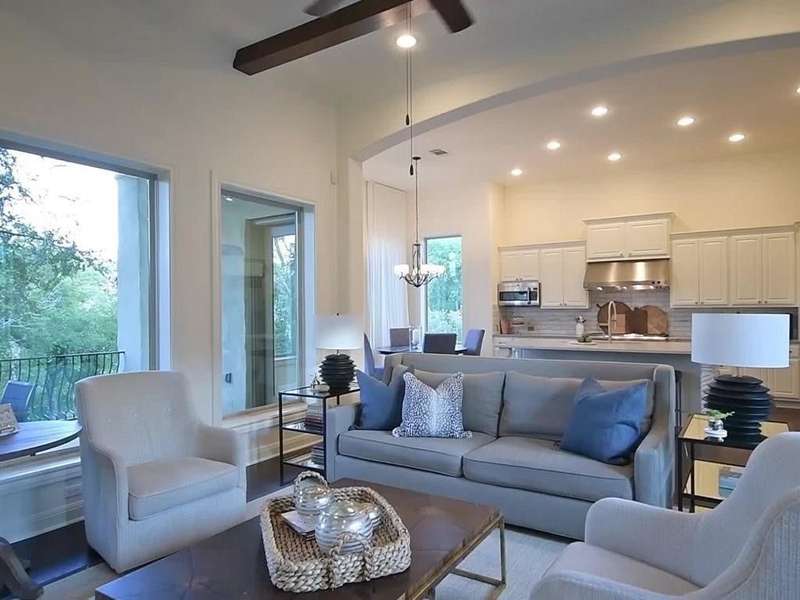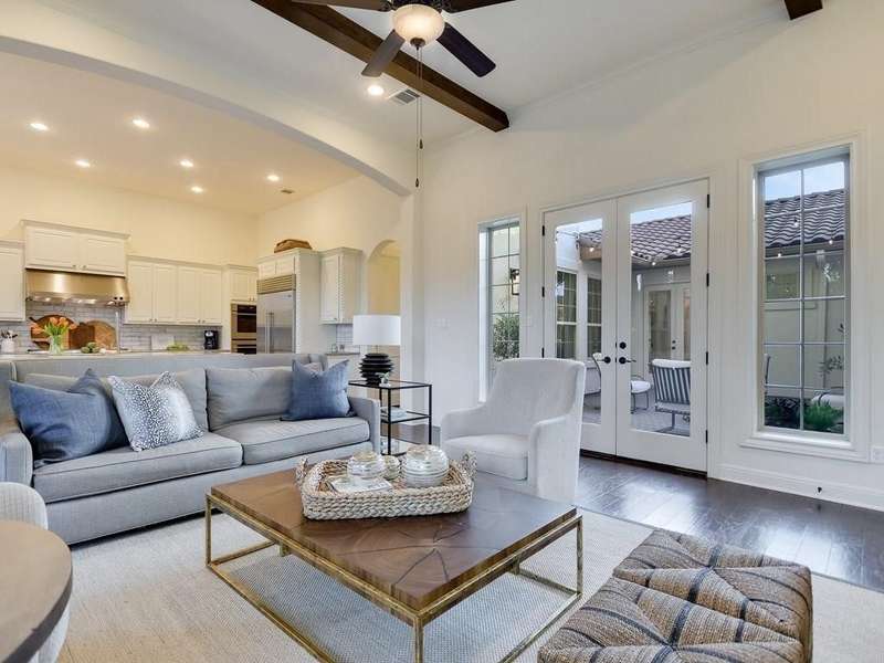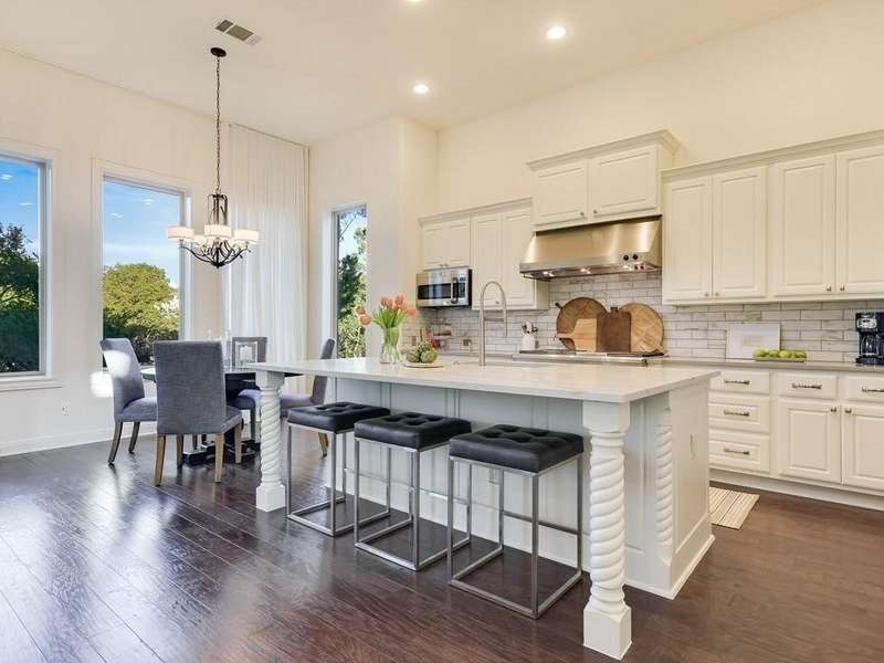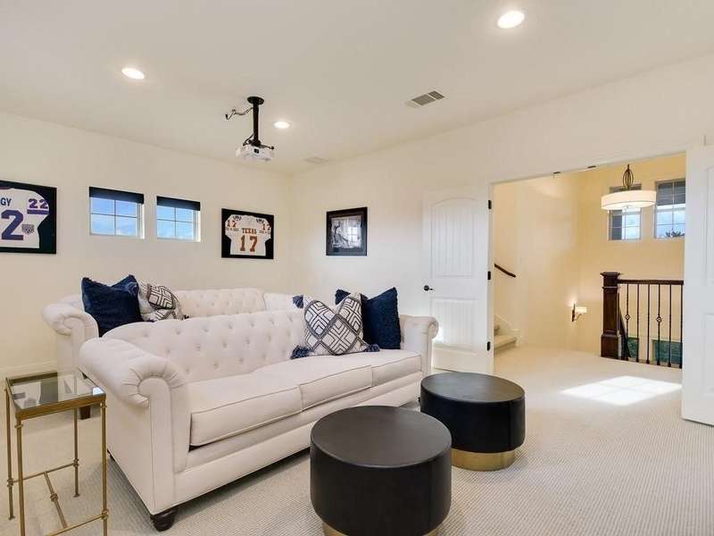 Gorgeous 4 Bedroom / 3.5 Bathroom Home with a Santa Barbara feel on an amazing Cul De Sac in Rough Hollow. Natural light & designer white walls create a serene canvas for the large, open living areas. Bright kitchen offers quartz countertops, built in refrigerator & designer window treatments. Luxurious master bath w/vintage travertine & freestanding bathtub. 3 large bedrooms on the second floor with Large Living area and Media room. Upstairs bathrooms all updated in 2021 to open walk in showers with cabinet space throughout and clean modern look. Spacious lot that backs to creek with deck and center patio with fire place. *Must See this gorgeous home*