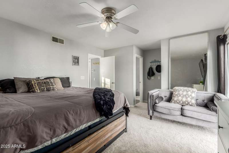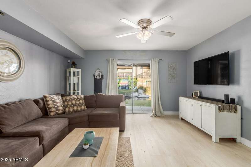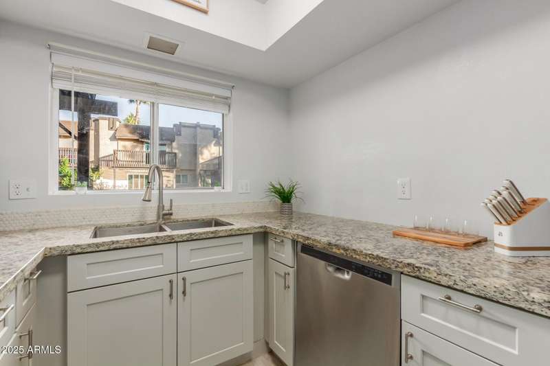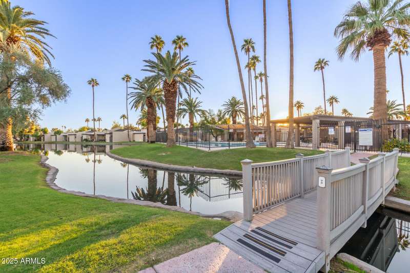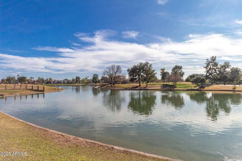 Welcome to your turnkey retreat in The Landings at Dobson Ranch. A peaceful water view and modern updates meet effortless living. This beautifully updated 2-bedroom, 2.5-bath townhome sits in one of Mesa's most established and desirable master planned communities. Inside, you'll find a renovated kitchen with stainless steel Whirlpool appliances, refreshed cabinetry, and granite countertops. Both bathrooms have been thoughtfully updated, and the home features fresh flooring throughout with new carpet upstairs for a clean, contemporary feel. Major systems are already done for you, including a 2024 water heater and a 2021 AC for long-term peace of mind. The functional layout includes a bright living room, a dedicated dining area off the kitchen, and two spacious upstairs bedrooms. Each has its own private bathroom. The primary suite offers a walk-in closet and a private balcony overlooking the lush community landscape. Additional conveniences include an attached garage, an enclosed front courtyard with a locking gate, and a security alarm system. Step outside to your back patio and enjoy calming views of the pond and greenbelt. This is an ideal spot for morning coffee or unwinding at the end of the day. Living in Dobson Ranch means enjoying a lifestyle rich with amenities. Lakes, walking paths, community pools, tennis and pickleball courts, playgrounds, and beautifully maintained common areas are all part of daily life here. You also get quick access to US-60, Loop 101, nearby restaurants, shopping, and everything you need within minutes. This is modern, low-maintenance living in one of Mesa's most loved communities. It is ready for its next chapter.