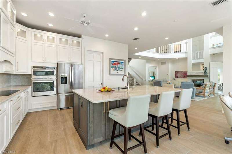 Welcome to 90 Southport Cove - Your Private Paradise in Barefoot Beach | Escape to this magnificent 4-bedroom, 6-bathroom coastal retreat, perfectly situated in the exclusive Southport Gated Community at Barefoot Beach. Designed with comfort and fun in mind, this dog-friendly getaway is ideal for families or groups of friends seeking sun, sand, and seclusion. Just steps from Barefoot Beach, this home offers a dreamy Florida experience with a private heated saltwater pool, hot tub, boat dock, kayaks, paddleboards, and much more. Unwind with a cocktail on the oversized balcony overlooking the bay or gather by the pool for a sunset barbecue - this is vacation living at its finest. The Layout From the moment you step through the front door, your Florida vacation begins. Main Floor offers open-concept living, dining, and kitchen space filled with natural light and sweeping bay views. Stylish contemporary decor with high ceilings and thoughtful design for relaxing and entertaining. Fully equipped kitchen with stainless steel appliances, granite countertops, large island with bar seating - perfect for family meals or evening drinks. Two spacious guest bedrooms, each with ensuite bathrooms. Expansive balcony with panoramic water views - perfect for morning coffee or evening wine. Top Floor features primary suite with king bed, his & hers walk-in closets, balcony access, and stunning bay views. Third guest suite with queen bed. Upstairs lounge area includes a trundle bed (sleeps 2) for additional guests. Lower Level has a second living area ideal for teens or young adults - complete with ping pong table, tiki bar, and lounge space. Convenient poolside bathroom with shower. Access to the backyard, pool, and private dock. Amenities & More | Soak up the Florida sun poolside, or enjoy a soak in the hot tub under the stars. Fire up the gas grill for a family cookout or set off on a water adventure with kayaks and paddleboards included. Watch for dolphins and manatees right from your dock! Need extra paddleboards or kayaks? We can arrange delivery (additional fee applies). Exclusive Amenities Include: Elevator to All Floors, Private Heated Saltwater Pool & Hot Tub, Private Boat Dock (Lift Not Available for Use), Kayaks & Paddleboards, Beach Essentials: Towels, Chairs, Umbrellas, Cart, and Toys Outdoor Dining Area, Lounge Seating, and Gas Grill, High-Speed WiFi Throughout. Whether you're planning a relaxing beachside escape or a fun-filled group gathering, 90 Southport Cove is your ideal luxury vacation rental in Barefoot Beach.
