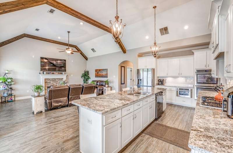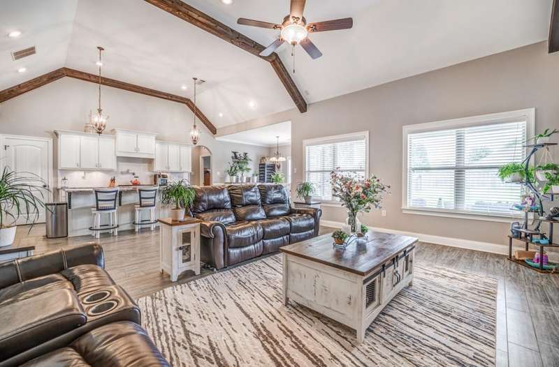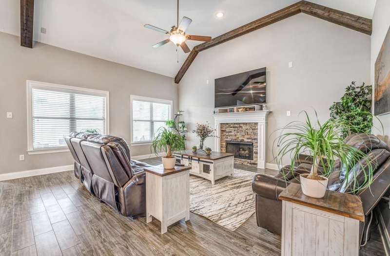 Situated in the heart of Munford, this home offers luxury, comfort, and convenience. This 5 bedroom, 3 bathroom home offers plenty of space and storage to meet all of your needs. Step inside to discover a chef's dream kitchen outfitted with granite countertops, double ovens, gas cooktop, built-in microwave, pantry, and a large island with seating?ideal for entertaining or family gatherings. The main living area features gorgeous tile floors, vaulted ceilings, and a gas fireplace for cozy evenings, while a home office on the main level offers a convenient workspace. Dual-zone HVAC provides independent temperature control upstairs and downstairs. Oversized storage space upstairs is perfect for a bonus room, play space, or potential fourth living area. The fully fenced backyard frames a whimsical fairy-garden oasis, plush green lawn, and covered back porch. As part of the highly sought after Glenview Estates community, 173 Littleton Way is your perfect future home! Assumable VA loan!