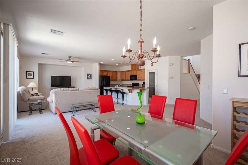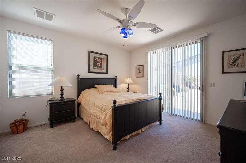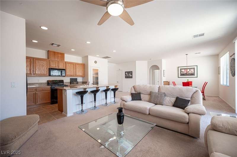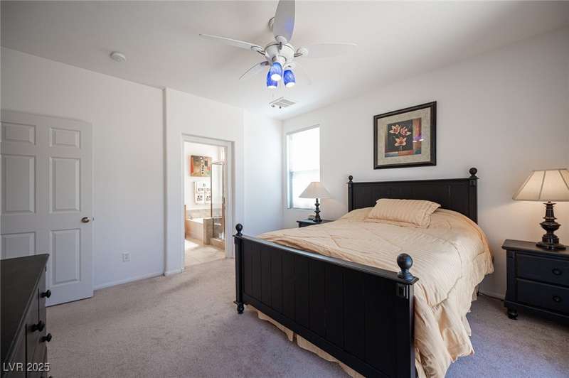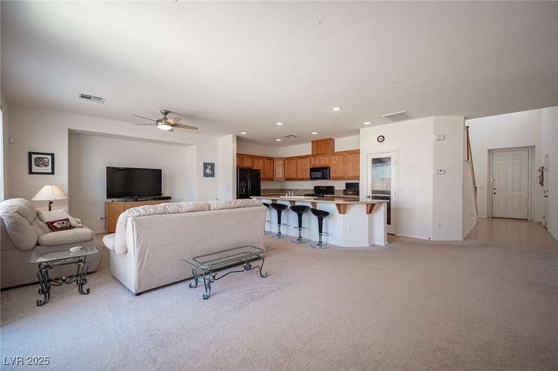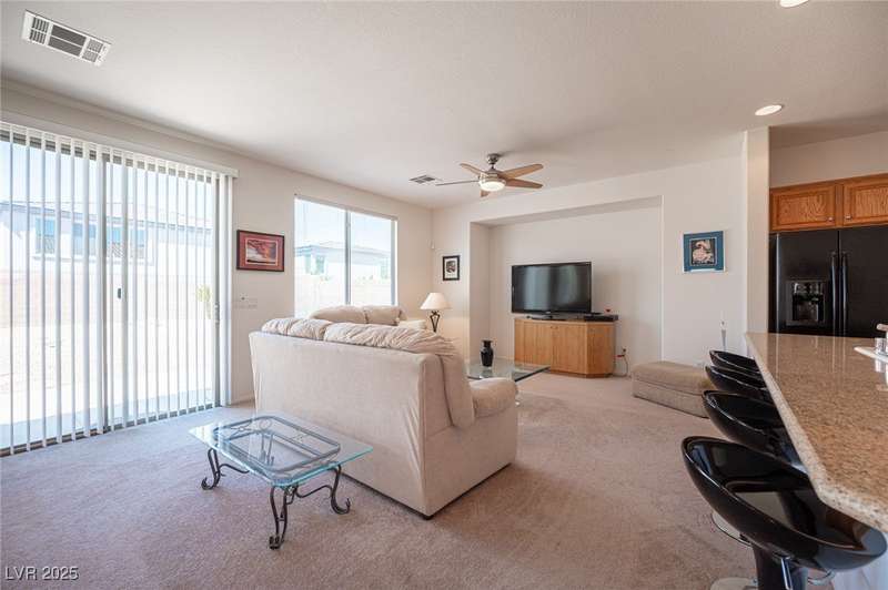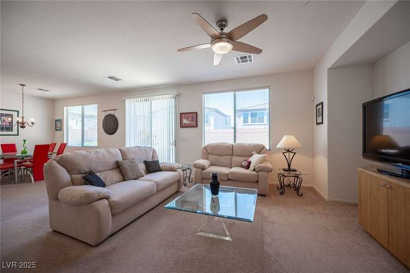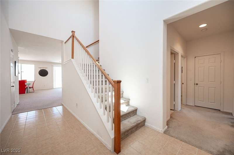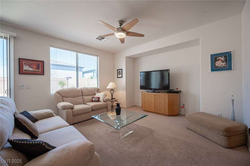 Discover relaxed family living in this beautifully designed home in the heart of the Nevada Trails community. This home functions primarily as a single-story residence, with the added convenience of a flexible space on the top floor perfect for office space, flex room, or bedroom with added bathroom. Featuring an open layout with a well-appointed kitchen, spacious living areas, a main-level primary suite, and 2 generously sized bedrooms. Outside you will find an oversized backyard with low maintenance desert landscaped grounds, ideal for entertaining and plenty of room to add your dream pool. Situated just minutes from parks, schools, shopping, and the brand new Costco, offering easy access to the I-215, this home balances comfort, convenience, and modern amenities.