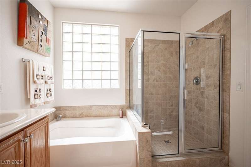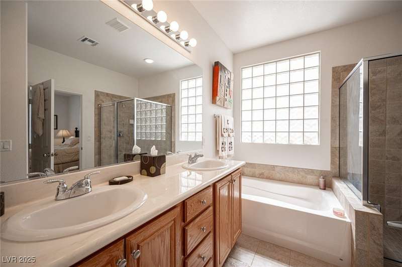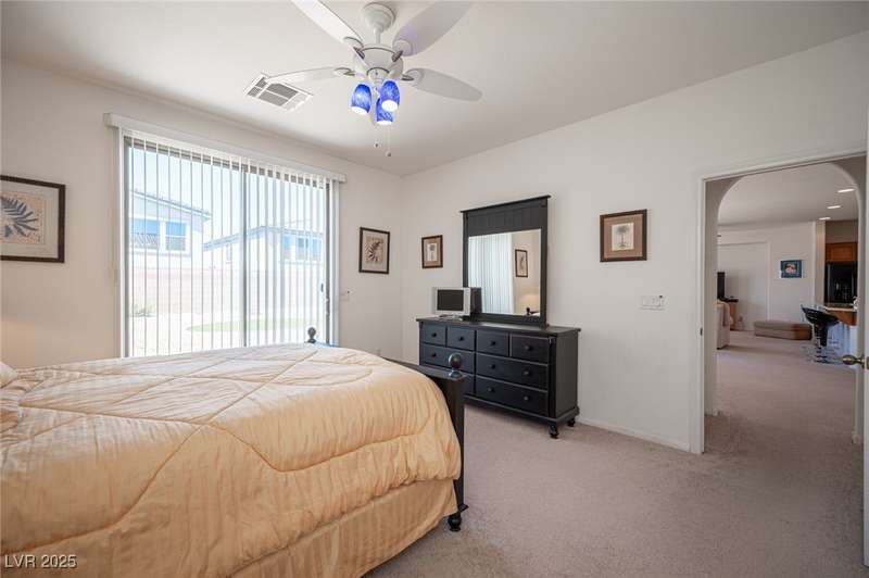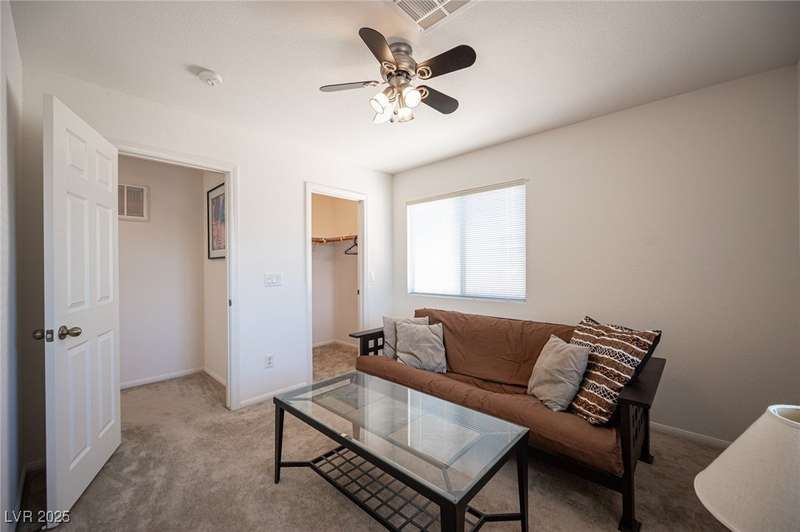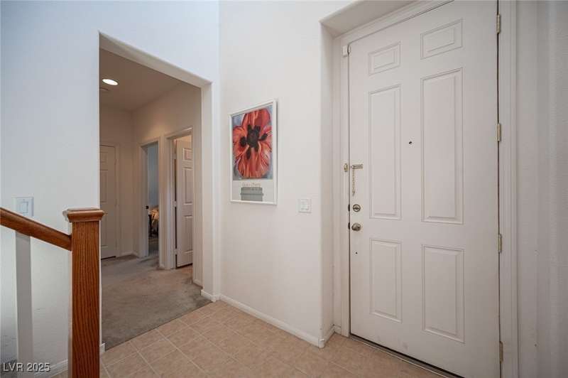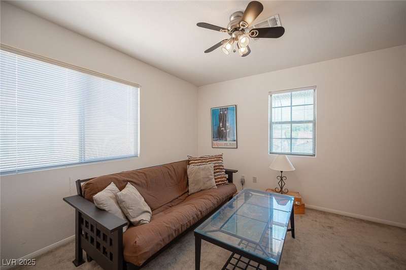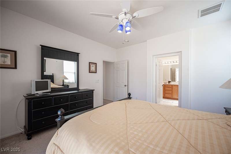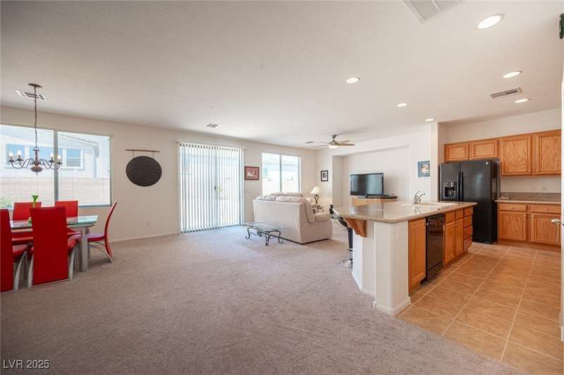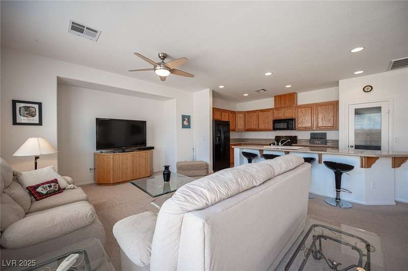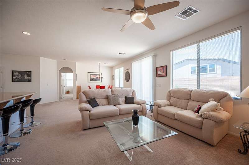 Discover relaxed family living in this beautifully designed home in the heart of the Nevada Trails community. This home functions primarily as a single-story residence, with the added convenience of a flexible space on the top floor perfect for office space, flex room, or bedroom with added bathroom. Featuring an open layout with a well-appointed kitchen, spacious living areas, a main-level primary suite, and 2 generously sized bedrooms. Outside you will find an oversized backyard with low maintenance desert landscaped grounds, ideal for entertaining and plenty of room to add your dream pool. Situated just minutes from parks, schools, shopping, and the brand new Costco, offering easy access to the I-215, this home balances comfort, convenience, and modern amenities.