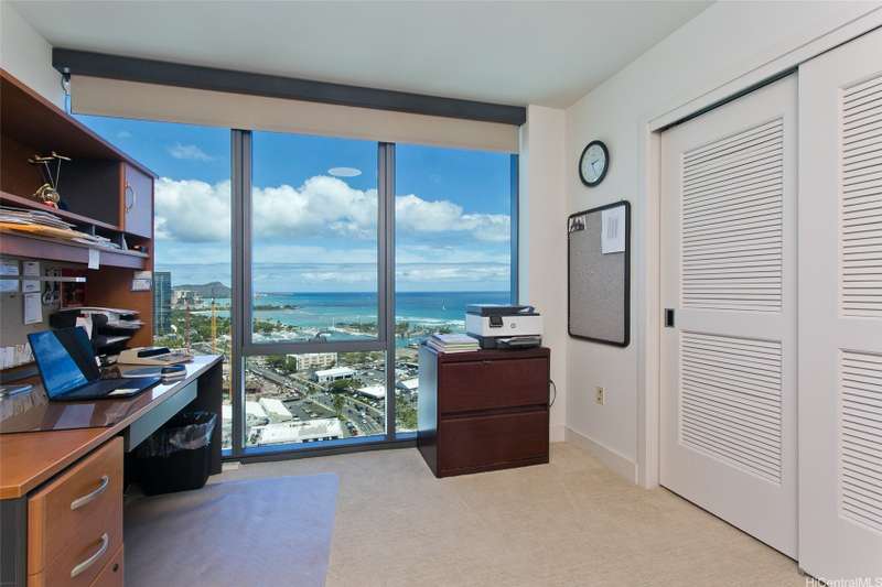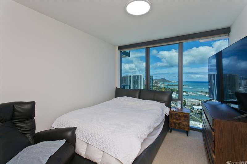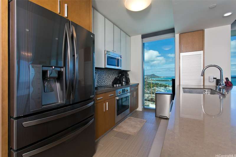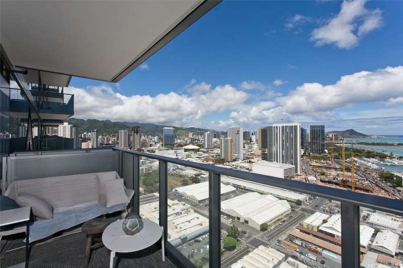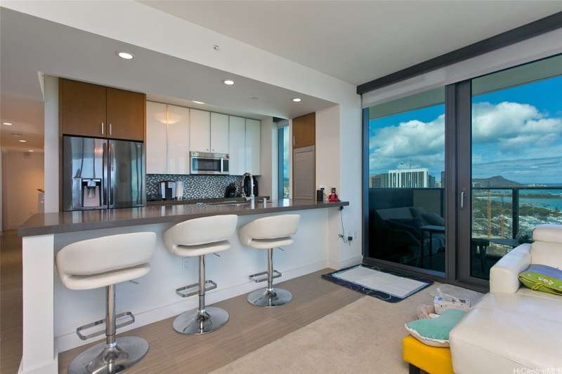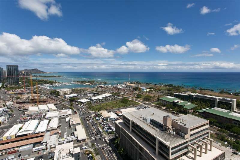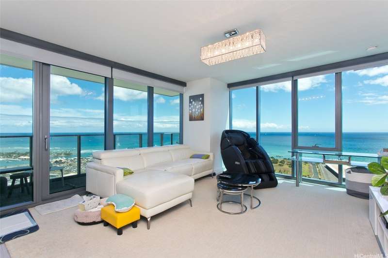 This Luxury condo has breathtaking views from every room! View the ocean, Diamond Head, Sunrise and Sunset through floor to ceiling windows with solar powered electrical shades. Located in the highly desirable 01 stack corner end unit on the southeast side of the building. 3beds/2bath/2 side by side parking stalls with and additional 4x8 private storage room, owner purchased separately, also tow storage lockers. Unit has split system ACs, beautiful chandelier, and high-end appliances. The building has amazing amenities and it's central to may shops and restaurants.