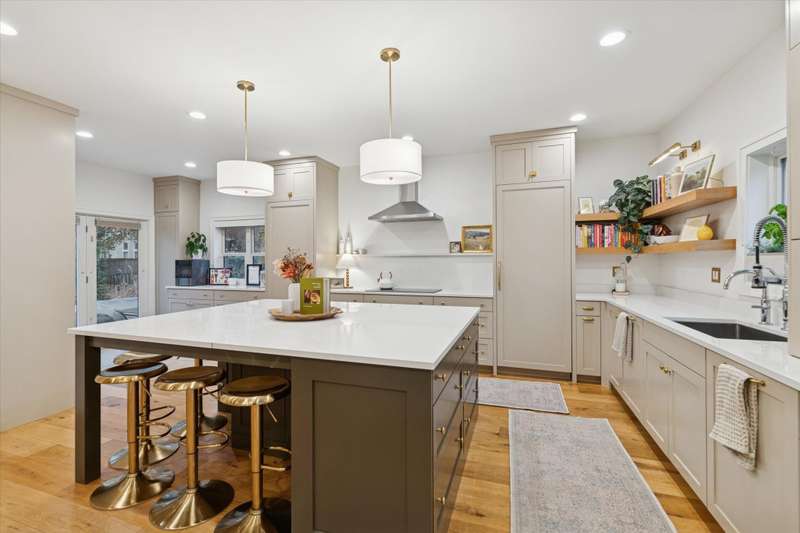 Welcome to 1824 Sherman! This beautifully updated home is perfectly located in East Grand Rapids where you are literally just a minute's walk from Eastown or Downtown East Grand Rapids. This 3-bedroom, 3-bath home features an open concept floor plan, including a brand-new custom kitchen with built-in separate refrigerator and freezer, high-end cooktop, wall ovens, quartz countertops, and an oversized island with seating for 6. There is a separate wet bar/coffee station in the dining room perfect for entertaining or daily use. The second floor features an enormous ensuite with a large seating area, decorative fireplace, walk-in closet, and a large bath with double vanity and oversized shower. There are two additional bedrooms and a full bath upstairs. Add to the living space by finishing a third floor with over 300 sf! The yard is beautifully landscaped with evergreens, decorative shrubs, bushes, stone retaining walls, paths, and a large patio area perfect for outdoor living.