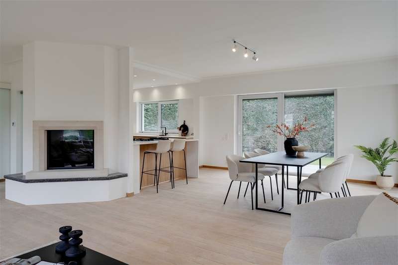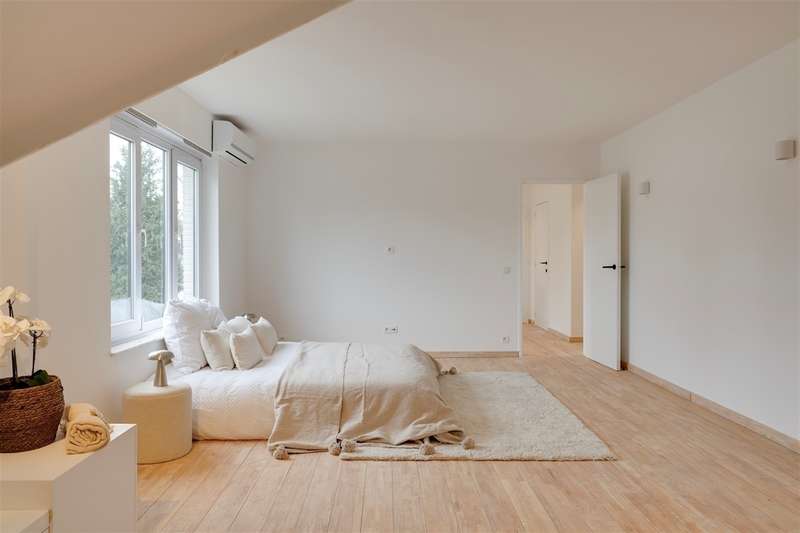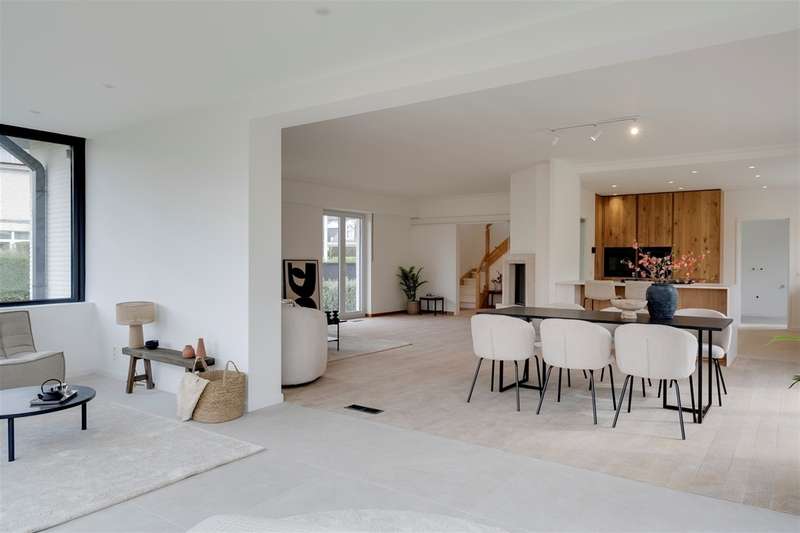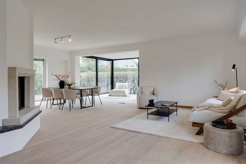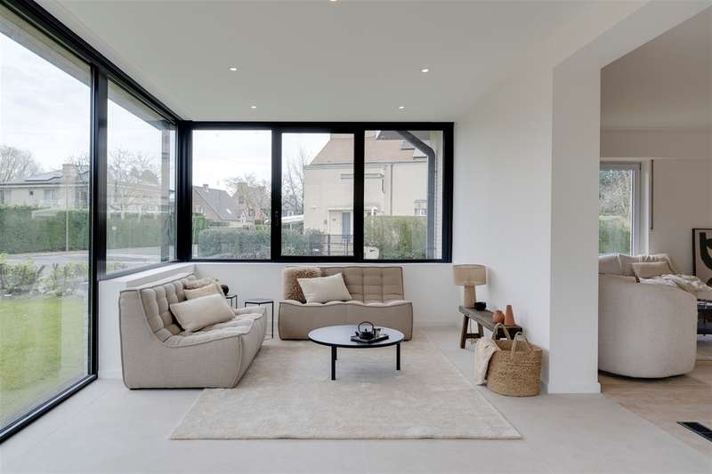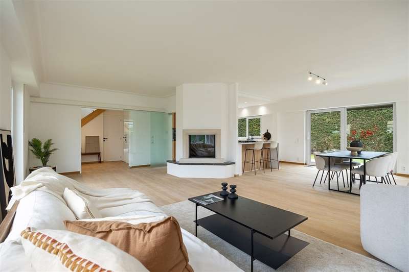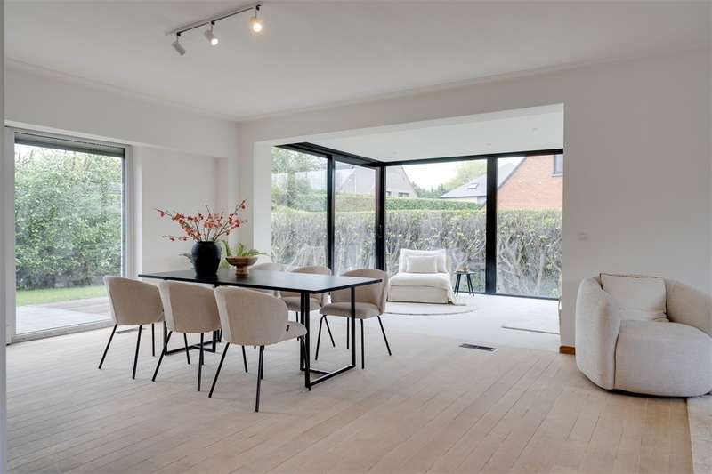 WILRIJK - Elsdonk: Luxuriously renovated modern villa with 4 bedrooms and 3 bathrooms on 705m² with south-facing garden. EPC label B. ; On a quiet location in Elsdonk, we find this beautiful villa with a high level of finishing and a beautiful light thanks to the many windows. Thanks to the south orientation, one enjoys sunny moments in the garden all day long. The new solar panels also ensure that this villa is future-proof and contribute to its energy efficiency. With its 4 bedrooms, including 1 on the ground floor, this property is the ideal family home in a highly sought-after residential area. ; DESCRIPTION: ; Ground floor: One reaches the house and driveway via a new aluminium sliding gate. Entrance hall with toilet and cloakroom Beautiful, large, open living space on parquet and with fireplace. Large, separate TV corner or library/office. New fully installed kitchen with spacious cupboards in brushed solid oak and kitchen island with high quality fitted ‘chef grade’ Nikola Tesla Flame gas fire and Elica extractor hood in flush mount. Adjacent open-plan dining room. Utility/laundry room with fitted cupboards and washing machine and tumble dryer connections. The ceiling-high sliding windows lead to the landscaped garden with south orientation. Fully fitted bedroom on parquet floor with adjoining bathroom with shower, washbasin, toilet and towel dryer. ; 1° Floor: Night hall with separate toilet Master bedroom on parquet floor with fitted sliding wardrobes. En-suite designer shower room with walk-in shower, beautiful washbasin cabinet and toilet. Two additional spacious and beautifully decorated bedrooms. Stylish, spacious bathroom with bathtub shower and double washbasin. ; PARTICULARS: ; - Prime location in the sought-after Elsdonk neighbourhood - New air conditioning - Designer sanitary ware - Double glazing throughout - Solar panels - South garden - Sliding gate with videophone in aluminium ;