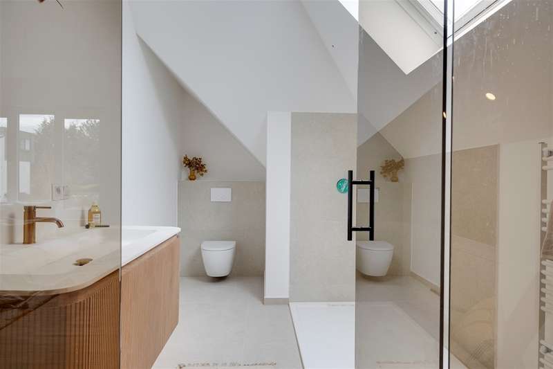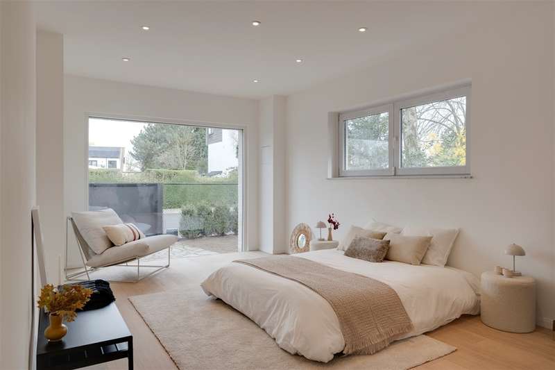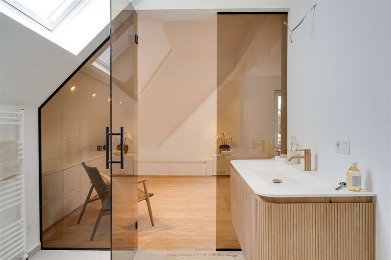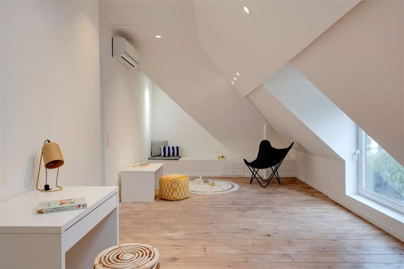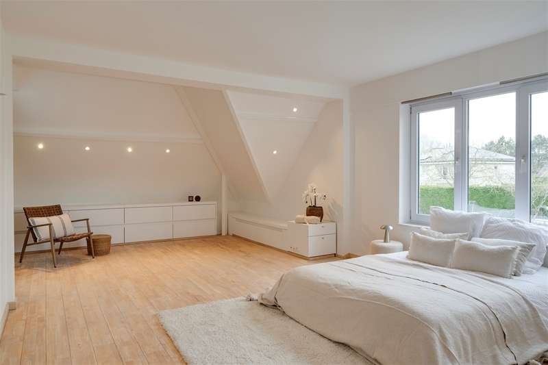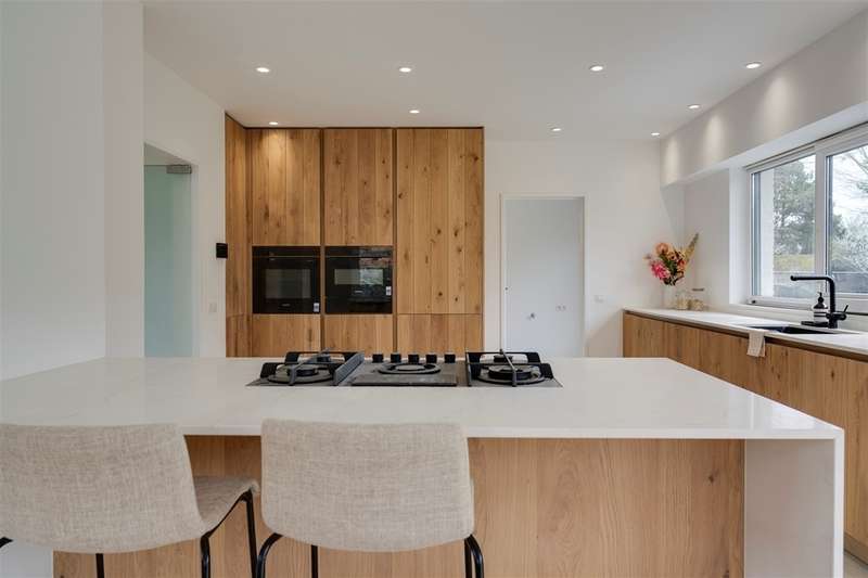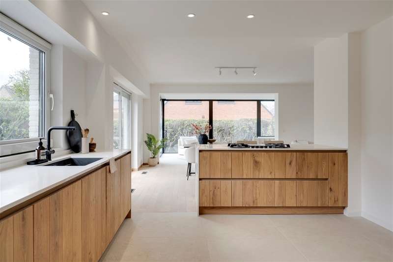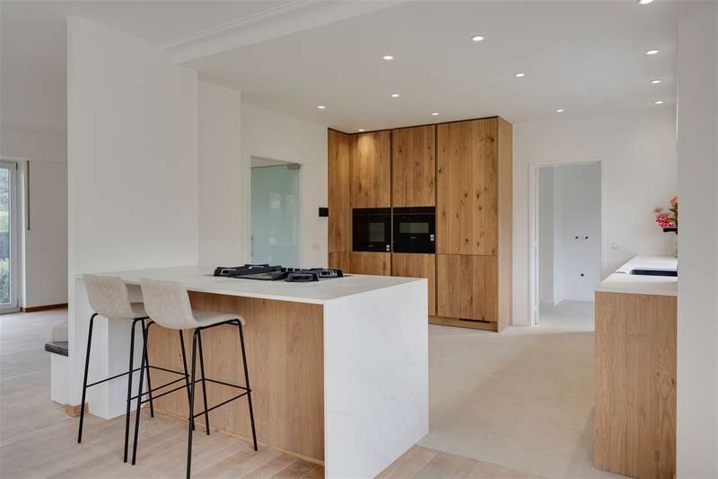 WILRIJK - Elsdonk: Luxuriously renovated modern villa with 4 bedrooms and 3 bathrooms on 705m² with south-facing garden. EPC label B. ; On a quiet location in Elsdonk, we find this beautiful villa with a high level of finishing and a beautiful light thanks to the many windows. Thanks to the south orientation, one enjoys sunny moments in the garden all day long. The new solar panels also ensure that this villa is future-proof and contribute to its energy efficiency. With its 4 bedrooms, including 1 on the ground floor, this property is the ideal family home in a highly sought-after residential area. ; DESCRIPTION: ; Ground floor: One reaches the house and driveway via a new aluminium sliding gate. Entrance hall with toilet and cloakroom Beautiful, large, open living space on parquet and with fireplace. Large, separate TV corner or library/office. New fully installed kitchen with spacious cupboards in brushed solid oak and kitchen island with high quality fitted ‘chef grade’ Nikola Tesla Flame gas fire and Elica extractor hood in flush mount. Adjacent open-plan dining room. Utility/laundry room with fitted cupboards and washing machine and tumble dryer connections. The ceiling-high sliding windows lead to the landscaped garden with south orientation. Fully fitted bedroom on parquet floor with adjoining bathroom with shower, washbasin, toilet and towel dryer. ; 1° Floor: Night hall with separate toilet Master bedroom on parquet floor with fitted sliding wardrobes. En-suite designer shower room with walk-in shower, beautiful washbasin cabinet and toilet. Two additional spacious and beautifully decorated bedrooms. Stylish, spacious bathroom with bathtub shower and double washbasin. ; PARTICULARS: ; - Prime location in the sought-after Elsdonk neighbourhood - New air conditioning - Designer sanitary ware - Double glazing throughout - Solar panels - South garden - Sliding gate with videophone in aluminium ;