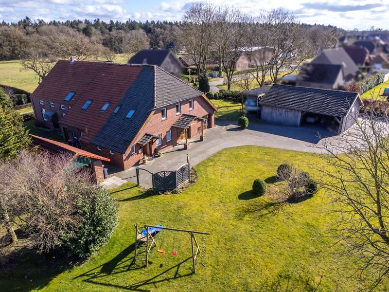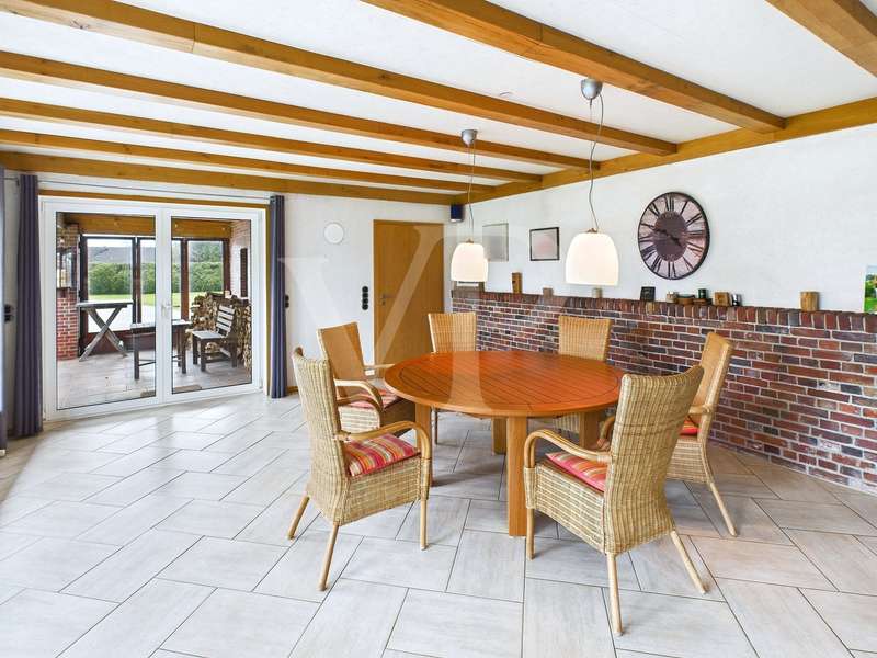 This charming country house offers a generous living space of approx. 345 m² on a spacious plot of approx. 2,622 m². It was built around 1919 and consists of two separate residential units, which are ideal for multi-generational living or as a combination of living and working. The residential unit on the upper floor has approx. 100 m² and is currently let on a fixed lease. The property comprises a total of 10 rooms, including 5 spacious bedrooms and 3 functionally equipped bathrooms. The room layout offers a variety of design options and invites individual adaptation to personal living requirements. Extensive modernization work was carried out in 2001. The highlight is the conservatory, which has been fitted with pleasant underfloor heating and offers a bright, inviting living space. The rear wing of the building was redesigned in 2002, with an old barn being converted into a living area and shortened by 8 meters. The redesigned gable has cavity wall insulation on the inside wall, which ensures efficient thermal insulation. The heating system at the rear of the building was replaced in 2000, providing the property with a reliable central heating supply. A central heating system is installed here, which ensures pleasant temperatures throughout the property. The front residential building was also modernized, with around 80% of the attic being converted. The furnishing quality of the entire property can be described as simple and thus offers scope for individual design and modernization measures. The property is in need of renovation, which opens up the opportunity for talented buyers to fully exploit the potential of this impressive property and design it according to their own ideas. The roof contributes significantly to the energy efficiency of the house and should be fully insulated if necessary. The spacious garden of the country house offers plenty of space for leisure activities, garden projects or simply relaxing. The quiet location combined with the generous plot area makes this property particularly attractive for nature lovers and those who appreciate life in the countryside. Overall, this property represents an exceptional opportunity to acquire a building steeped in history and develop it further according to your own ideas. Interested parties who appreciate the great potential and the opportunity for individual design should not miss the chance to view the property. Experience the potential of this property and arrange a viewing today.