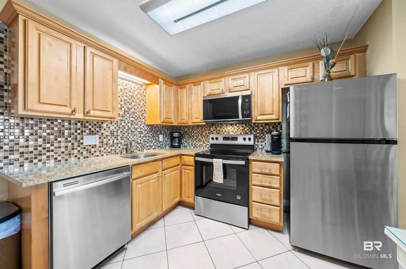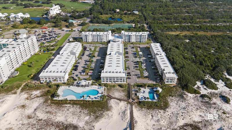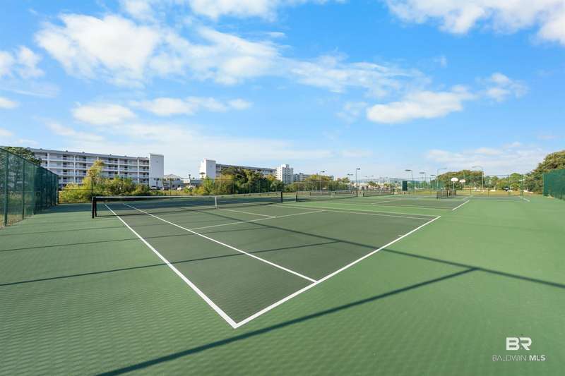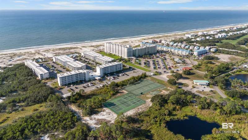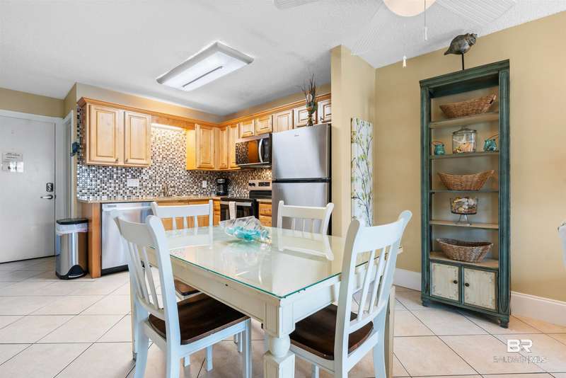 Coastal chic design with really nice kitchen and bath updates. Well maintained furnishings, stylish decor and proven rentals. Updated cabinets, granite counters, stainless kitchen appliances and backsplash. Tile flooring throughout and wainscoting in both bath spaces. Private patio. Fun, family beach resort with fantastic amenities. The building looks better than ever with updates to the outdoorpools, indoor pool, steam room, hot tub, sauna, tennis and pickleball courts. On site Sassy Bass restaurant and Kiva Dunes golf course. Laundry facility on site. Pets are not allowed for owners or renters. Buyer to verify all information during due diligence.