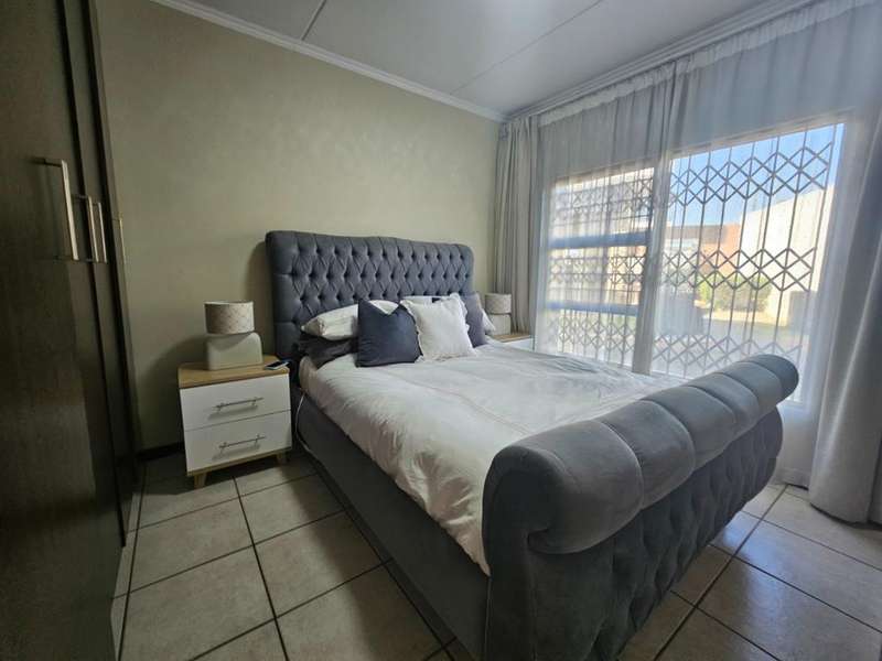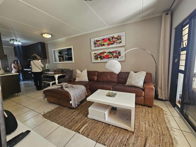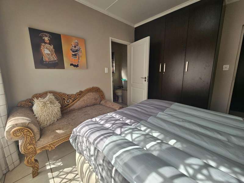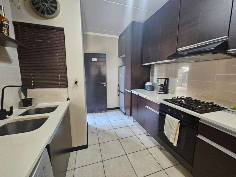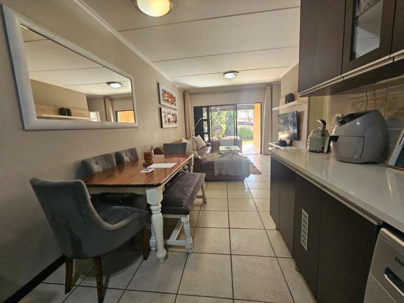 Spacious 3 Bedroom Garden Apartment with Inverter Included This modern 3-bedroom, 2-bathroom garden apartment offers comfortable living in a secure and well-maintained complex. The kitchen is fitted with a gas hob, under-counter electric oven, and enhanced with additional cupboard space. It includes room for a fridge, washing machine, and tumble dryer. The open-plan lounge and dining area flow seamlessly onto a covered patio and established private garden ?Çö perfect for indoor-outdoor living. Three generously sized bedrooms complete the home, all tiled and featuring ample built-in wardrobes. The main bedroom boasts an en-suite bathroom, while the second and third bedrooms share a full family bathroom. The apartment is conveniently located near the complex entrance and comes with two covered parking bays. An inverter is included in the sale ?Çö an excellent energy-saving bonus. The complex offers residents a range of amenities including a swimming pool, outdoor gym, children's play areas, communal braai facilities, and is fibre-ready. Enjoy 24/7 security for complete peace of mind. Ideally situated close to major shopping centres, business hubs, popular schools, the Modderfontein Golf Course, and the highway network ?Çö with OR Tambo International Airport just a short drive away. To arrange a viewing, contact Irene today.