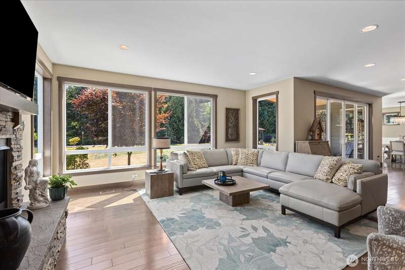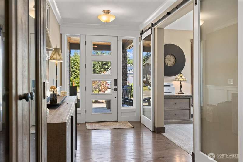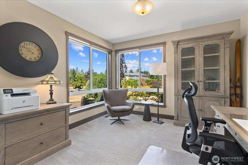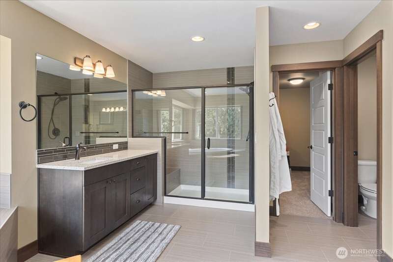 Welcome to this stunning 4-bedroom, 5-bath estate nestled on a beautifully landscaped acre in one of the area’s most desirable, sprawling neighborhoods. Surrounded by acres of protected NGPA and featuring access to three community parks, this home offers a perfect balance of luxury, privacy, and connection to nature. Enjoy complete level entry into the spacious main floor, which features a bedroom with en-suite bath—ideal for guests or multigenerational living. A large bonus room, private office, and an open living area provide ample flexibility for today's lifestyle. Upstairs, you'll find three more oversized bedrooms, each with its own en-suite, plus a versatile flex room perfect for a home gym, craft room, or additional workspace.