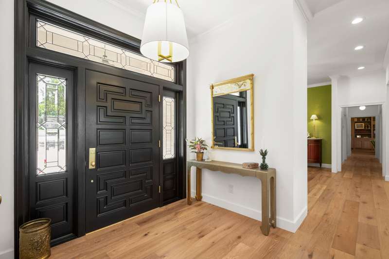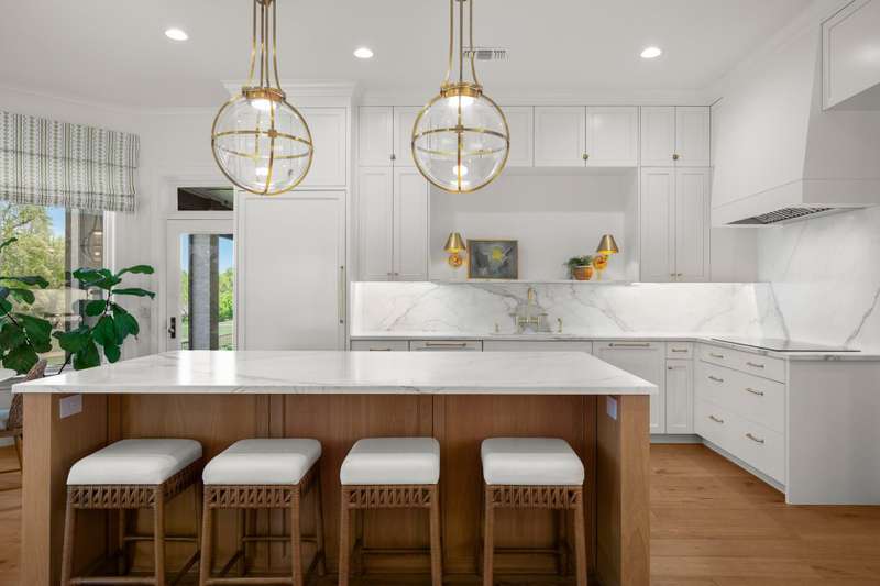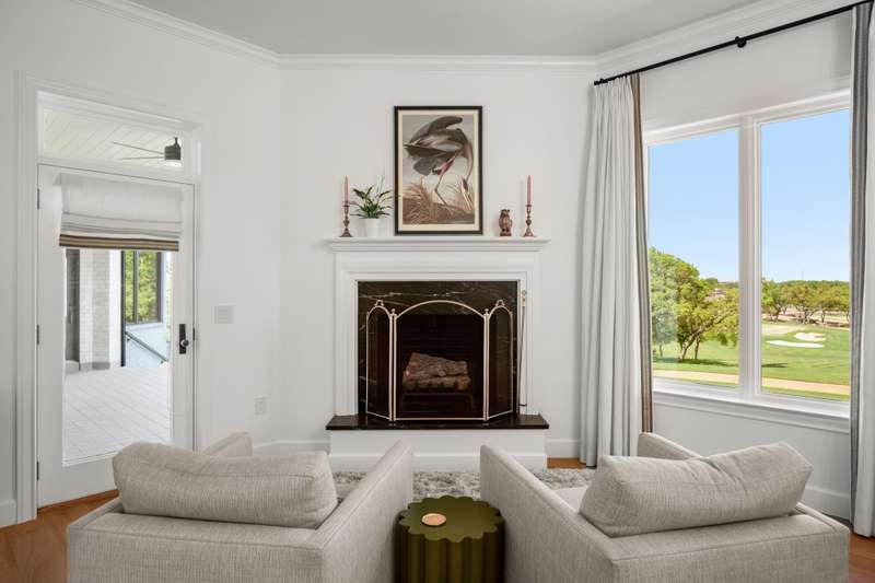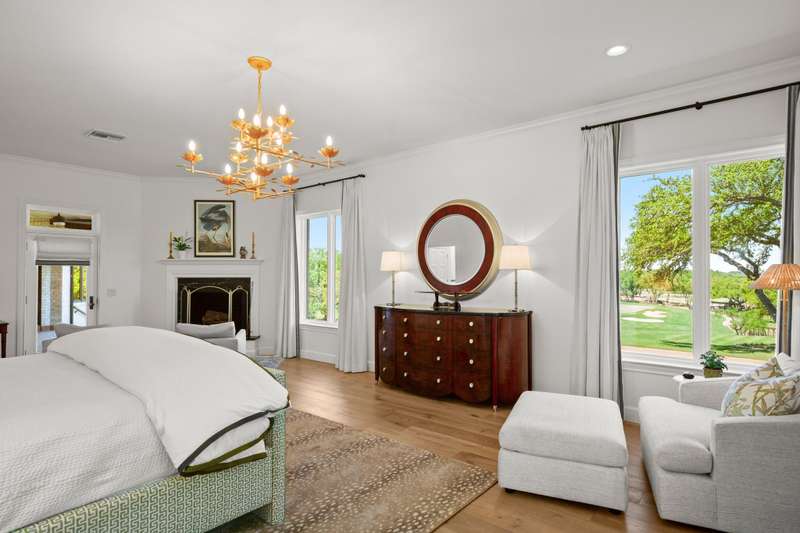 Wake up every morning in your own Palm Beach-inspired golf resort. This picturesque traditional family home has been renovated to perfection and sits on a private lot nestled in a cul-de-sac and on fairways #13 and #14 of The Hills of Lakeway golf course. Flawless interior design touches in every room, this vibrant family home is the ideal property for those seeking stunning views and quick access to the course and community clubhouse. This colorful two-story home features four bedrooms, four full and two half baths. A gourmet kitchen in the center of the home offers panoramic views and a breakfast nook overlooking the pond. The spacious primary bedroom on the first level includes breathtaking views of the course with a private fireplace, lounge area, and large walk-in closet and shower. There are two light-filled living areas downstairs, with a fireplace and formal dining, and an elevator to the second level, where the airy designs and classical details for each space continue. The second primary suite upstairs features a private balcony overlooking endless views of the greens. There are also two additional bedrooms on the second level, including an optional living/game room featuring a wet bar, and a study. Outside, the impressive driveway leads to a spacious two-car and golf cart garage, along with an attached workshop and garden room. The oasis-like pool is surrounded by lush greenery and opulent oak trees that offer additional privacy and natural ambience. Absolutely brimming with old-world glamor and sophistication with a modern twist, this home is sure to transport you to your own personal paradise!