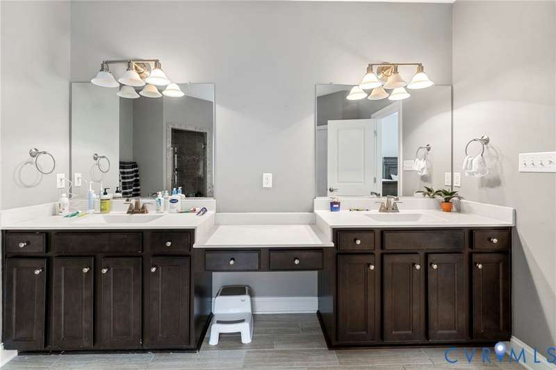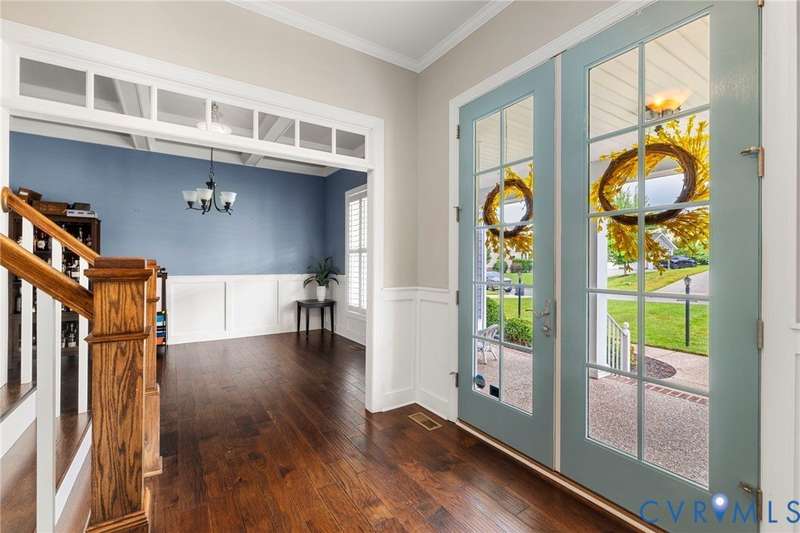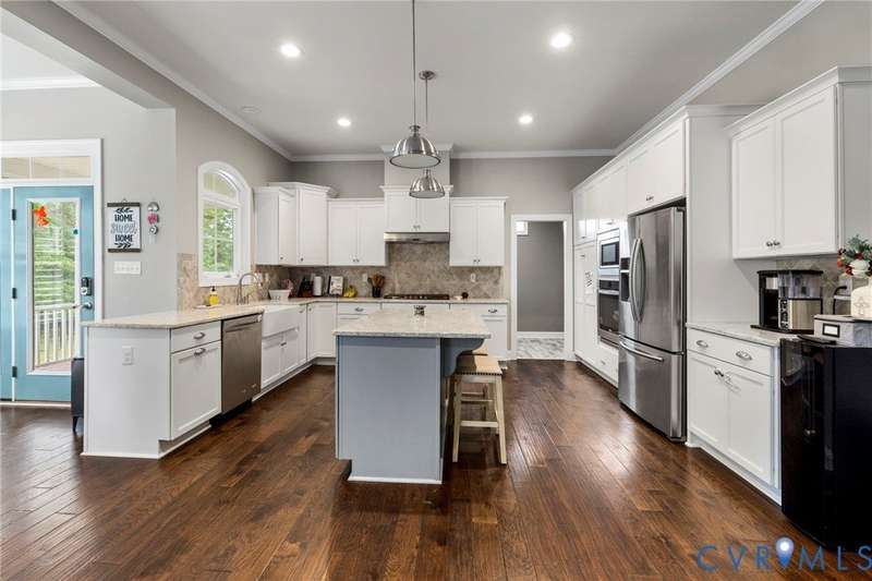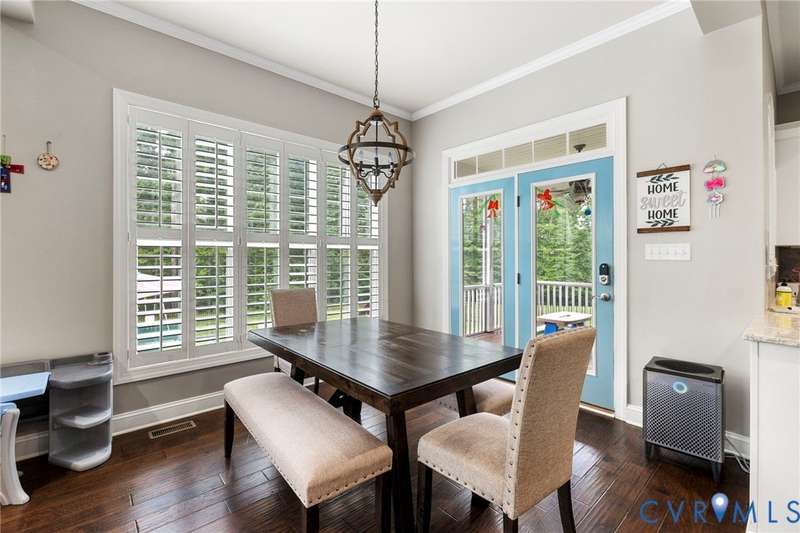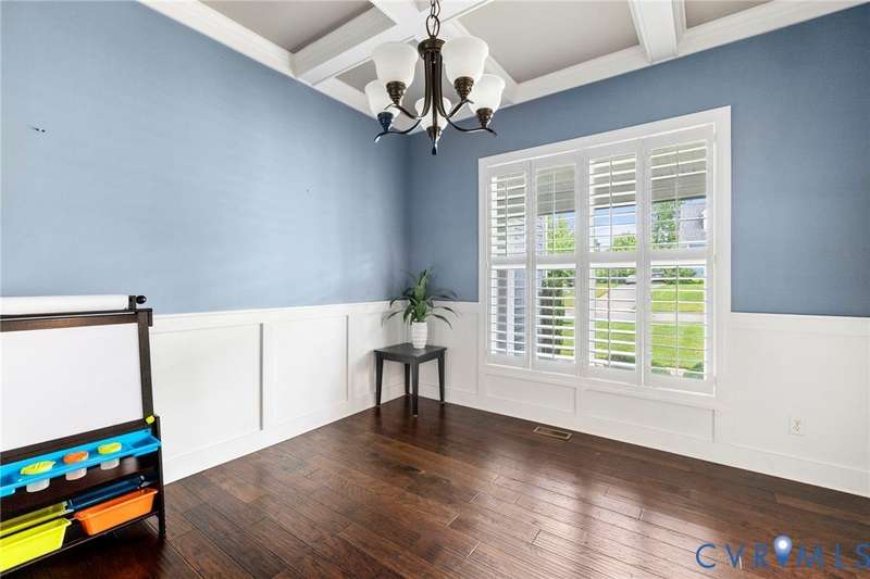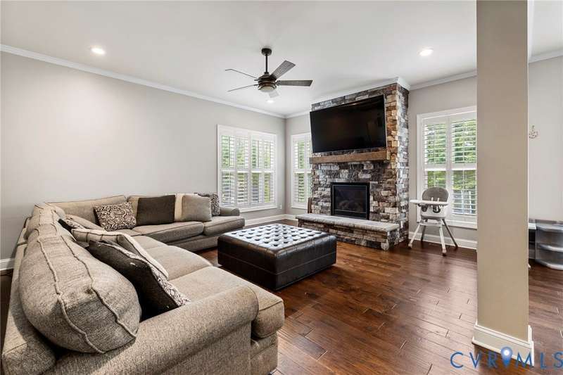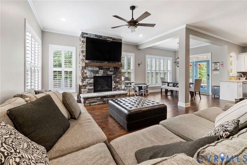 Welcome to this stunning custom-built Craftsman-style home in the sought-after, amenity-rich community of Hallsley! From the moment you arrive, the aggregate driveway & walkway, full covered front porch & stately double door entrance create a welcoming & polished curb appeal. Step inside to a bright & elegant foyer w/gleaming HDWD, flanked by a formal dining room featuring wainscoting & exquisite coffered ceiling. Plantation shutters add timeless character & privacy throughout entire 1st level. Private 1st-floor office makes working from home a pleasure with its French doors & custom accent wall. Main-level guest suite includes HDWD, oversized closet & adjacent full bath w/granite-topped vanity& glass-enclosed walk-in shower, for guests or multi-generational living. The heart of the home is the expansive family room, where a floor-to-ceiling stone gas fireplace and wood mantle create a cozy focal point. Flow seamlessly into gourmet kitchen, outfitted with granite countertops, large center island, SS appliances, farmhouse sink, gas cooktop, and wall oven. Entertaining is easy with walk-in pantry and butler's pantry featuring wine storage. Convenience continues with well-designed mudroom/drop zone w/garage access. Upstairs, retreat to luxurious primary suite showcasing tray ceiling, custom WIC, and spa-worthy en suite bath with dual vanities, plank tile floors, garden tub, and tiled walk-in shower. Second level also features spacious loft w/barn door, custom built-in bookshelves, and dedicated laundry room complete w/cabinetry & utility sink. 3 additional BR & 2 full BA provide ample space for family or guests. Third-floor retreat includes WIC, private BA &access to walk-in attic storage, making it the perfect bonus suite, playroom, or hobby space. Enjoy outdoor living year-round on the screened-in porch overlooking a beautifully landscaped, fenced backyard with paver patio, built-in fire pit & dedicated playset area. Rare 3-car garage completes this exceptional property in one of the area's premier neighborhoods.