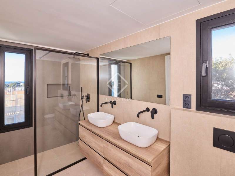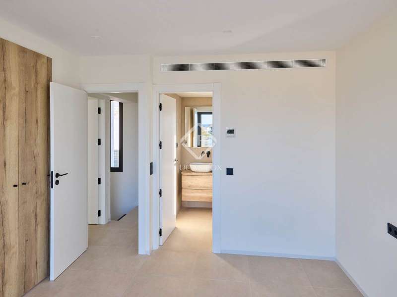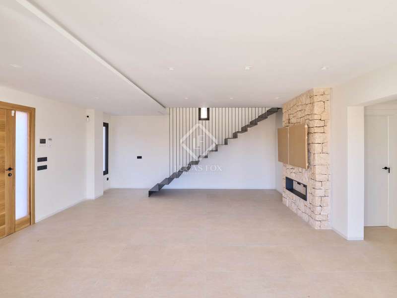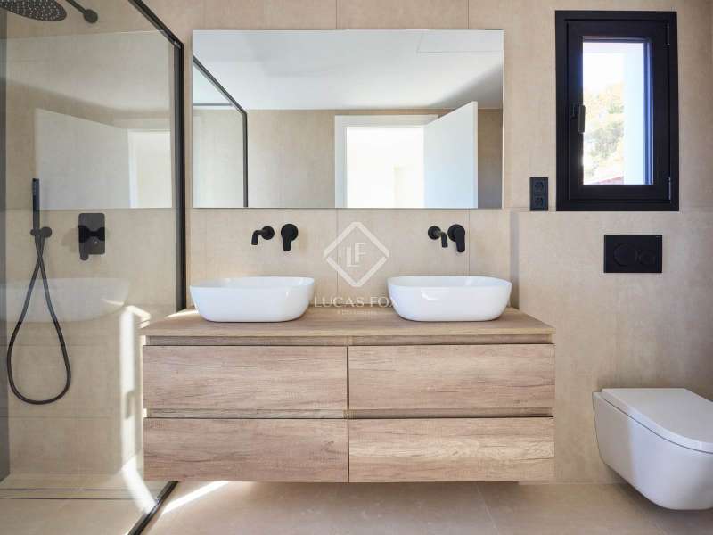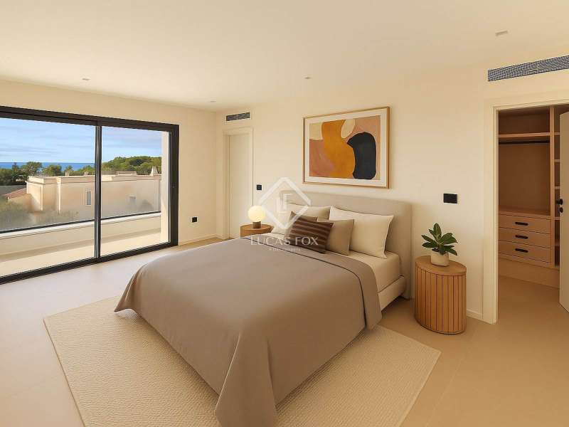Magnificent modern house recently renovated, situated in Cap Martinet, a peaceful area close to Talamanca beach. The house is spread across two floors. The main floor features a fully equipped kitchen, an open-plan dining area, and a living room. Additionally, there is a bathroom with a shower and a double bedroom with fitted wardrobes. The second floor houses two bedrooms. Both bedrooms share a spacious terrace with views of the sea and the pool and have en suite bathrooms. One bedroom includes fitted wardrobes, while the main bedroom boasts a dressing room. The property offers various amenities for a comfortable stay, including an automatic irrigation system, hot and cold air conditioning, a fenced plot, an electric entrance gate, home automation, integrated lighting, a swimming pool, a video intercom, and a water treatment system. Please contact us for further information. (Some of the images shown correspond to an illustrative render created with artificial intelligence, for visual representation purposes)