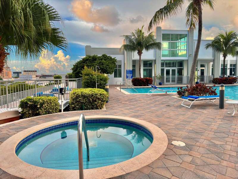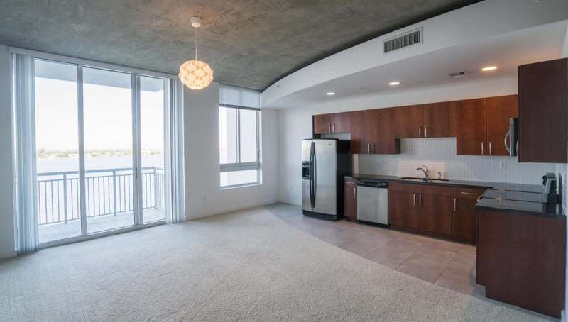 NO LAST MONTH RENT TO MOVE IN. Breathtaking views of sunset over Clear Lake from this 7th floor 1/1 condo! This unit offers 10ft high ceilings, floor to ceiling impact windows, in-unit laundry, fully appointed kitchen with granite counters, stainless appliances and wooden cabinets. In addition to enjoying gorgeous views from your balcony, the building offers a community pool & spa, pool deck and grilling area, game room, fitness room, walking path, business center, private gated garage and manned lobby with 24/7 security. High speed I internet is included with the lease. Intercoastal, Rosemary Square, Kravis Center, Flagler Drive, and all the shops and restaurants at Clematis Street are within walking distance. Easy access to the Palm Beach International Airport, Brightline, Tri-Rail.