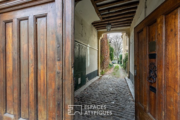 A separate bedroom with a sleeping area and a mezzanine (dressing room, office), as well as a bathroom and separate WC, complete the apartment. Not forgetting, a significant advantage in the historic heart of Senlis, a parking space (for 2 vehicles) in the inner courtyard, accessible through the porch from the street.