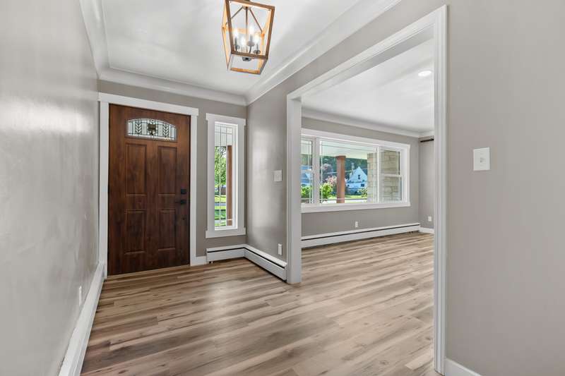 Exceptionally rebuilt and thoughtfully redesigned, this ranch sits on a half-acre lot with over 2,400 sq. ft. of finished main-level living and an additional 800 sq. ft. of unfinished potential below. Fully renovated in 2024/2025 with updates inside and out (see attached list). New metal roof, windows, plumbing, electrical, and a complete interior gut renovation make this home feel like new construction, while preserving the solid bones and character you won't find in post-2000 builds. The gourmet kitchen features custom Amish white oak cabinetry, quartz countertops, and warrantied stainless-steel appliances, opening into a breakfast nook and a heated four-season room overlooking the pool. The open floor plan is enhanced with new flooring, crown molding, a formal dining room, and a spacious living room with a gas fireplace. With timeless finishes, meticulous upgrades, and zero deferred maintenance, this home is truly turnkey and move-in ready. TR Schools.