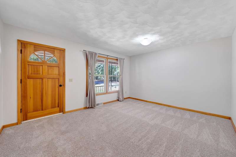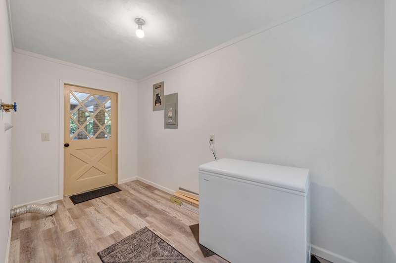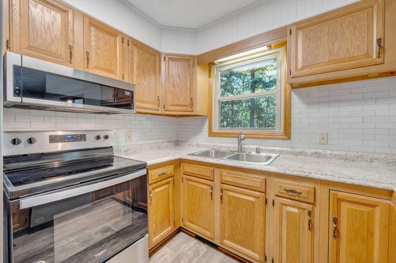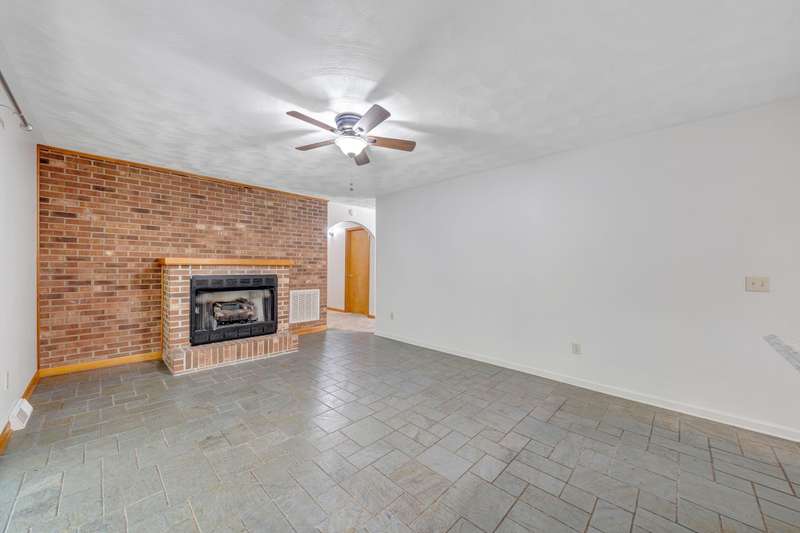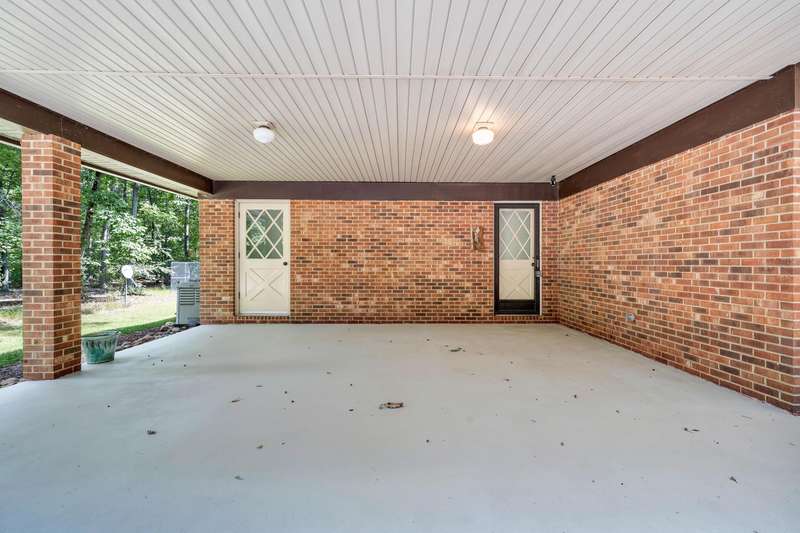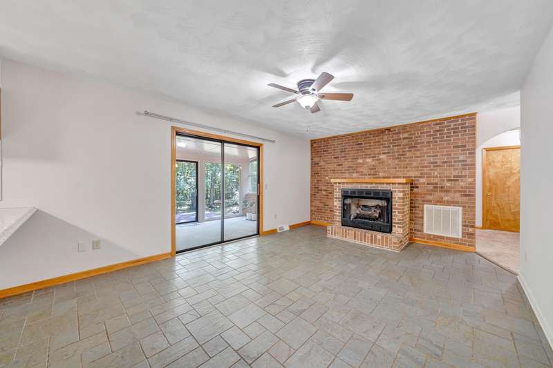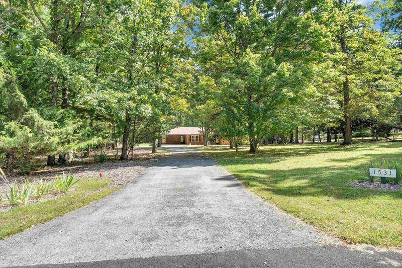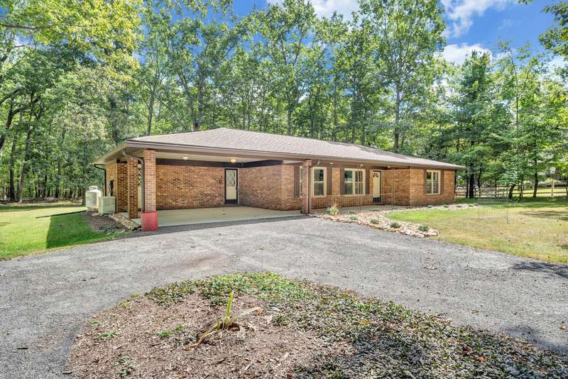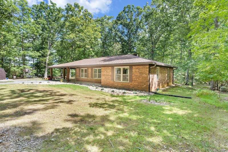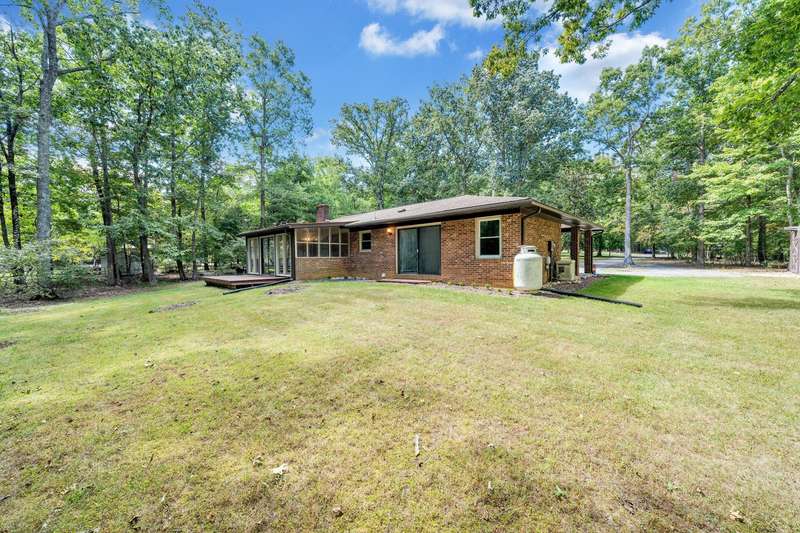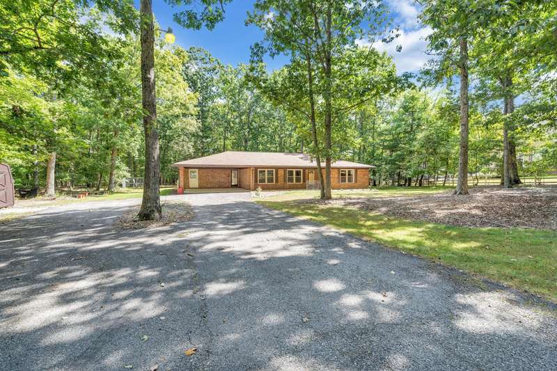 Welcome to this charming brick ranch nestled on 3 mostly flat, private, wooded acres. Offering the perfect blend of comfort, updates, and functionality, this home features 3 spacious bedrooms and 2 full baths. The inviting living room flows seamlessly into a warm family room with slate tile flooring and a cozy gas log fireplace, open to the kitchen with luxury plank vinyl flooring, updated stainless steel appliances, and plenty of workspace. Enjoy the expansive sunroom with views of the peaceful surroundings, an ideal spot for relaxing or entertaining. A convenient laundry room, covered carport, and storage shed add to the practicality of this well-maintained property.