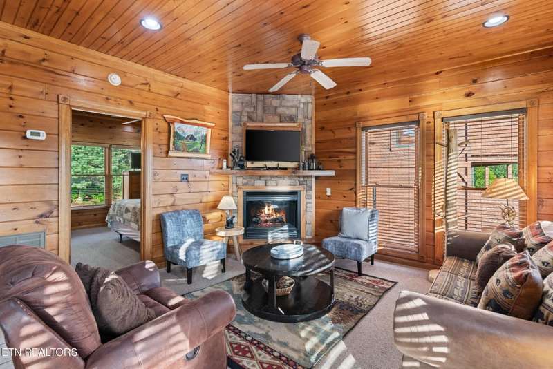 3D Matterport available to virtually tour this cabin! Spectacular Smoky Mountain Views your guests are looking for! Welcome to your guest's next favorite getaway. This log cabin features multiple spacious decks providing serene places for morning coffee or evening sunsets above the trees. The breath taking view will provide a unique experience to remember for years to come. Entertainment is built in - the lower level walk-out offers a full recreation zone complete with a pool table, air-hockey table and a multi-arcade system that will keep families engaged for hours. Relax in the bubbling hot tub on the deck, soak in the views, and let the stress melt away. Bedrooms offer comfort and privacy while the bunk-bed in the recreation spaces gives flexibility for larger groups or families. Your guests will enjoy amenities like the community pool - perfect for guests seeking more than just cabin entertainment. Investors will love the prime location, turnkey entertainment features, and mountain classic design presenting an ideal short-term rental or vacation home strategy. Call today to schedule your appointment for your million dollar view cabin today! Buyer/Buyers agent to verify all pertinent information.