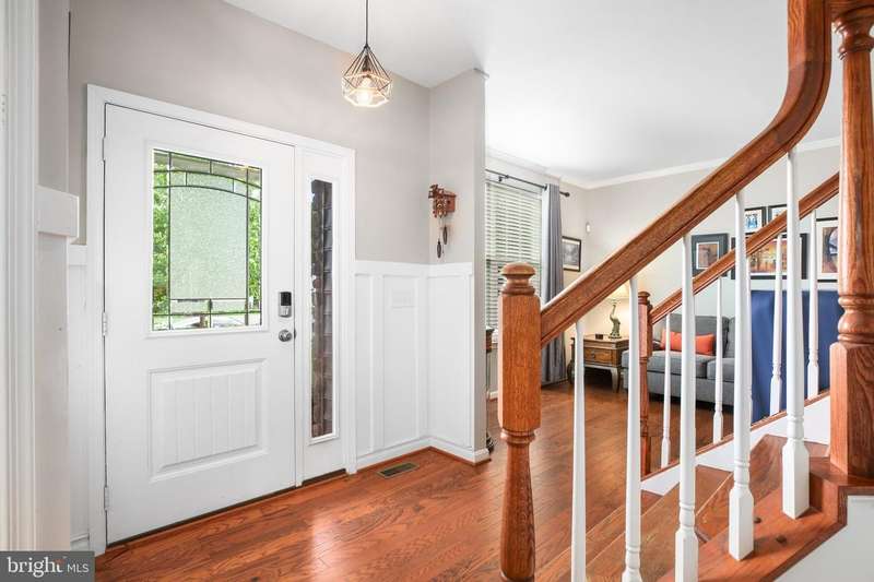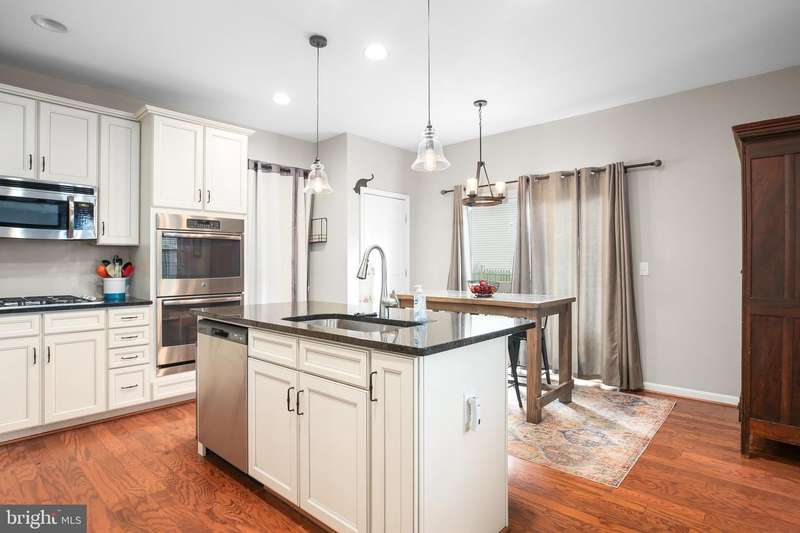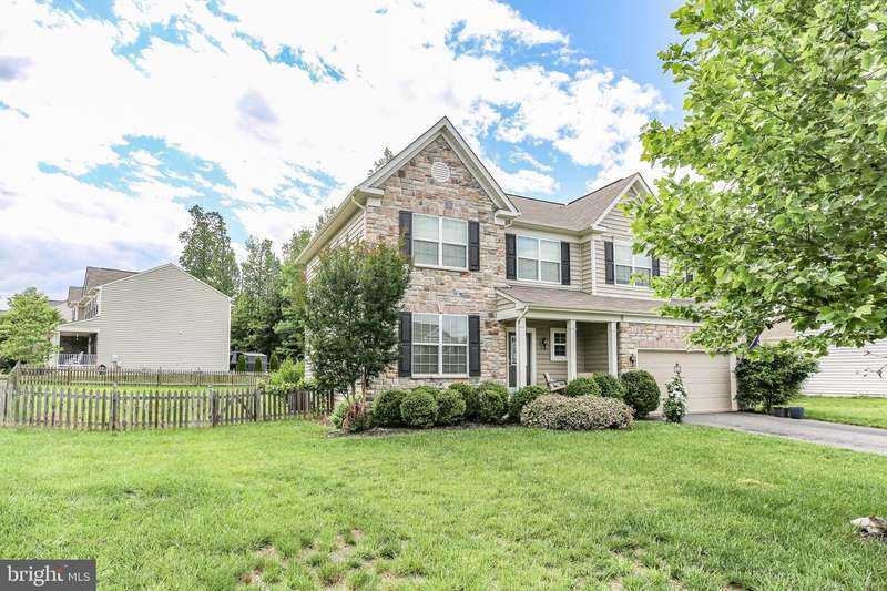 Three finished level colonial in sought-after Leeland Station community! This 2015 built stone-front home is located on a premium corner lot with fenced in yard and spacious rear deck. Inside you will find 9ft ceilings, hardwood flooring throughout and gas fireplace. Upgraded kitchen with double oven, stainless steel appliances & granite countertops. Large primary bedroom suite with walk-in closet. Luxury primary bath includes dual sink, walk-in shower. Finished lower level includes full bath. All this and within walking distance to VRE, mins. to I95 and shopping!
