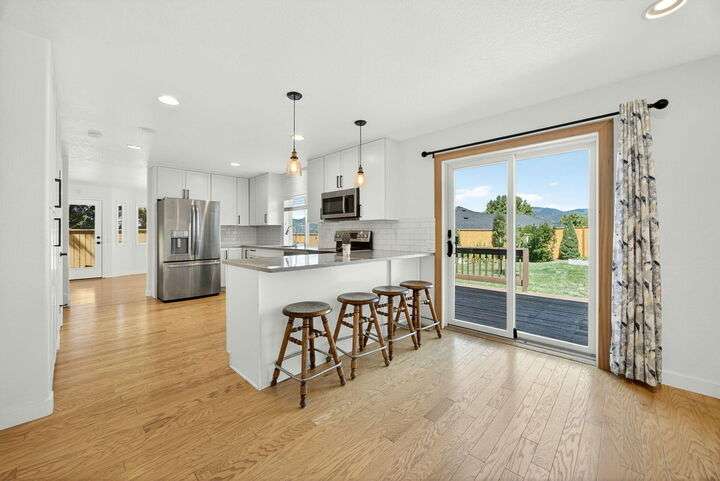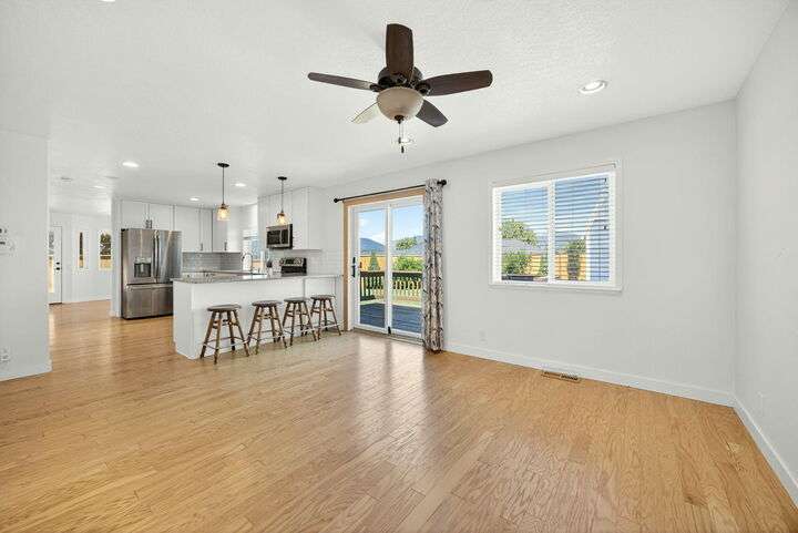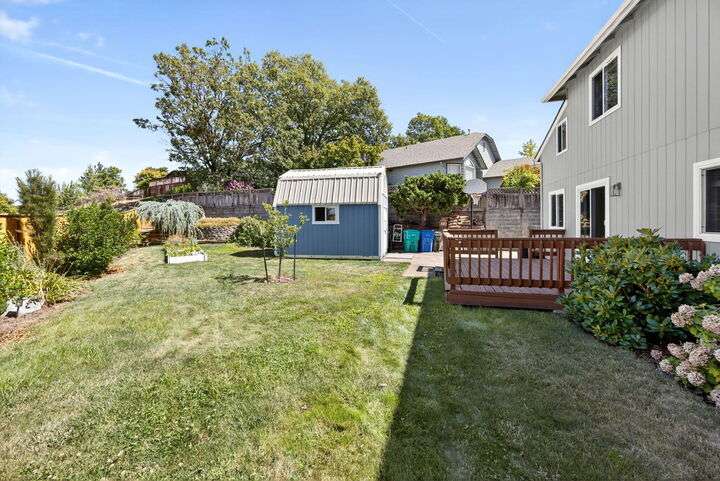 SOLAR Powered, Workshop, beautifully maintained and move-in ready, this two-story home sits on a spacious lot at the end of a desirable cul-de-sac. Upstairs are 3 bedrooms and 2 baths; light and bright main level offers living room, family room, 1/2 bath, dining area, spacious kitchen with walk in pantry and laundry room. Enjoy a large 2-car garage with drive-through door, plus a new 144sf shed with power, workbench, and attic storage. The huge, newly fenced backyard boasts raised garden beds, GPID irrigation, and stunning mountain and sunset views. Fresh updates, a great neighborhood, and thoughtful care make this home perfect for gatherings and everyday comfort.