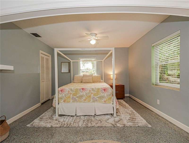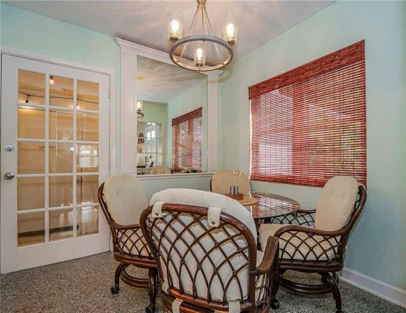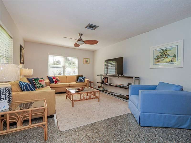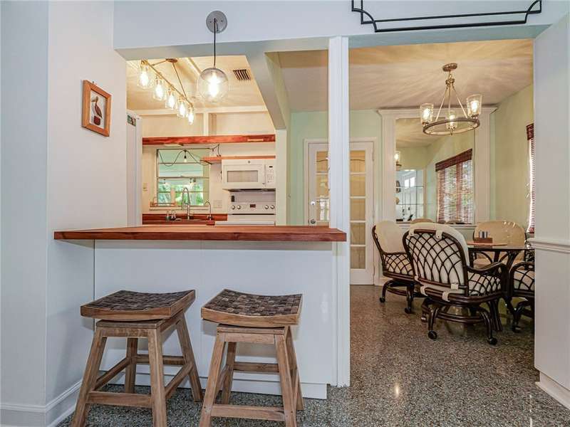This delightful, fully furnished home is brimming with classic Old Florida charm. From the gleaming terrazzo floors and butcher block countertops with open shelving to the spacious enclosed porch and private outdoor patio, every detail is filled with character. The home offers peace of mind with modern updates including newer kitchen appliances, a recently replaced water heater, and a brand-new roof installed in July 2025. Nestled away on a quiet dead-end street, yet just minutes from dining, shopping, and entertainment, its location is truly the best of both worlds!