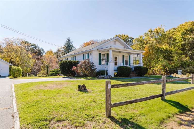 Charming and Historic Sears Roebuck Kit Home – 1917 - Step into a piece of history with this delightful Ranch-style home - The Stanhope plan style. Designed for comfortable one-floor living, the home features an open-concept living and dining area, eat-in kitchen, & 3 rooms with closets. While public records list as a 2-bdrm, the estate upgraded the septic system to a 3-bedroom title v system. Includes high ceilings & hardwood floors, vinyl, tile & carp. Enjoy the spacious feel of the sunroom, perfect for relaxing or entertaining. The home needs updating. Furnace & hot water installed 2016. The property includes a det.1-car garage and sits on an expansive. 32,265 SF lot—ideal for outdoor activities, gardening, or simply enjoying the open space. Located in the heart of Wrentham, this home offers classic New England small-town charm, all while being conveniently situated midway between Boston and Providence. A unique opportunity to own a piece of architectural history & timeless appeal