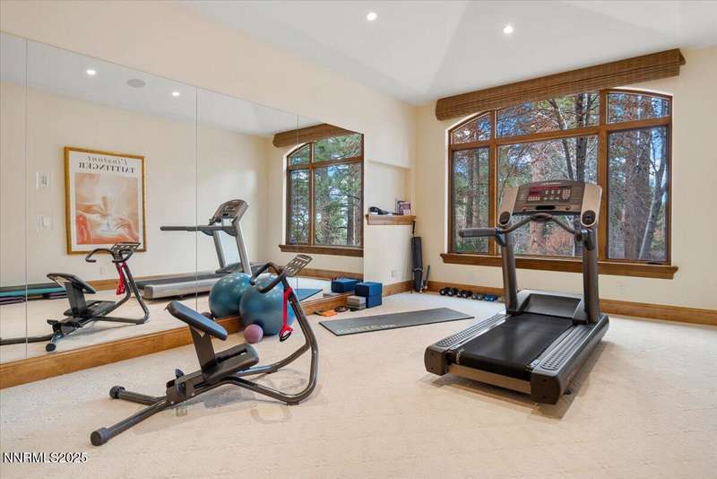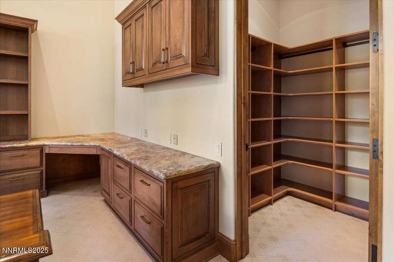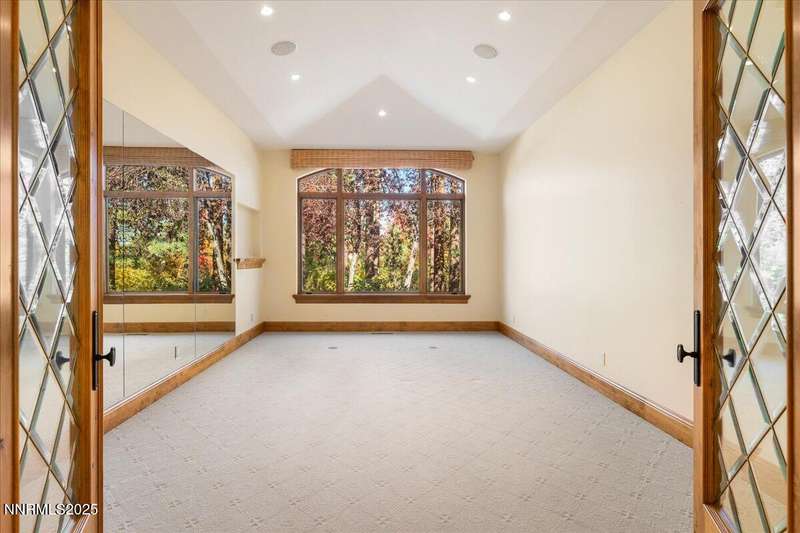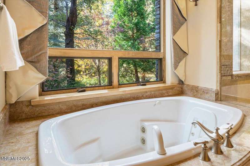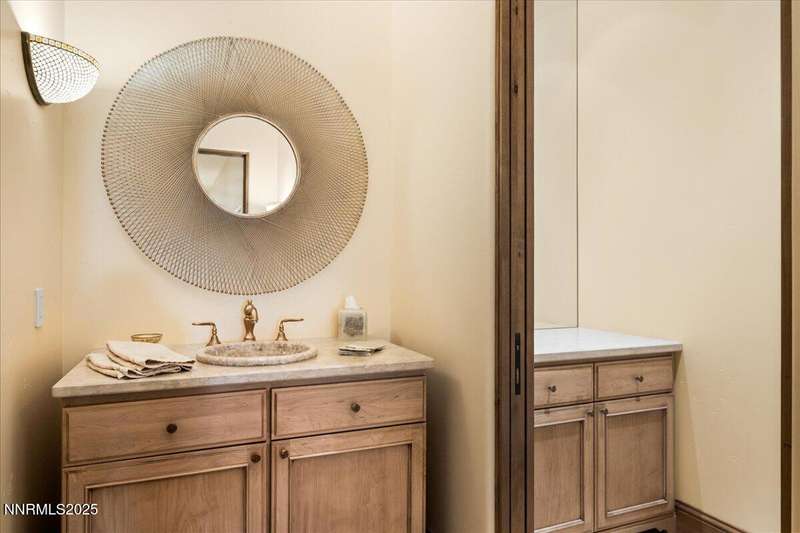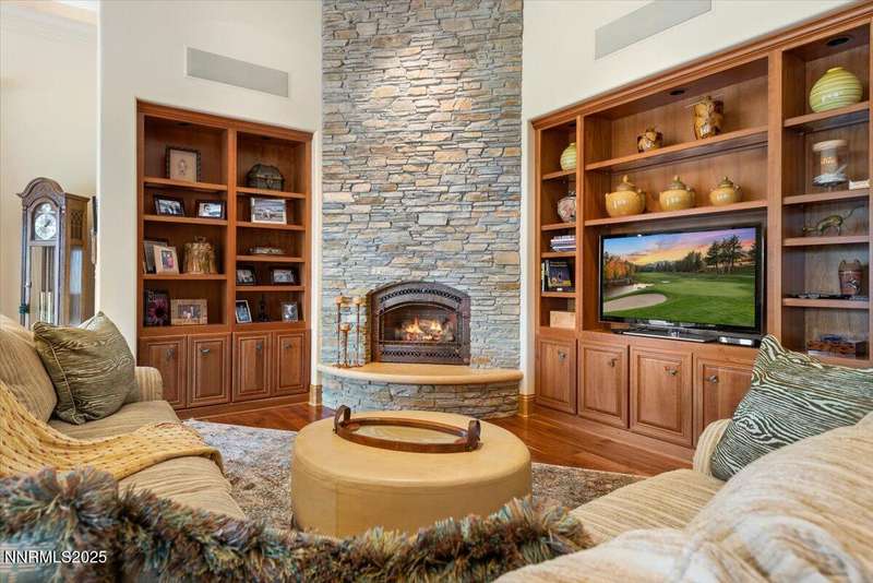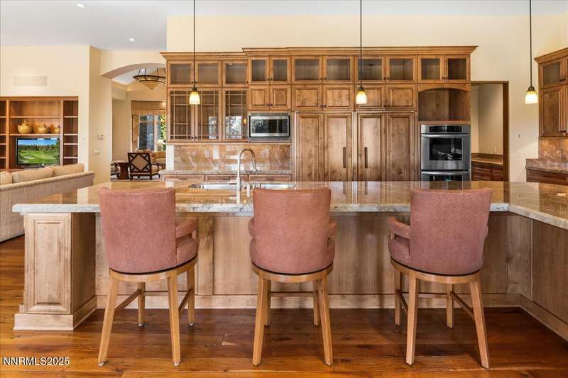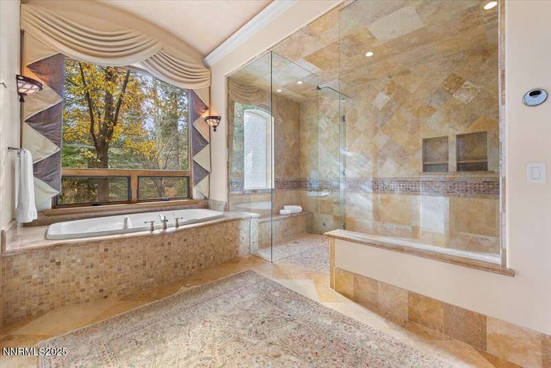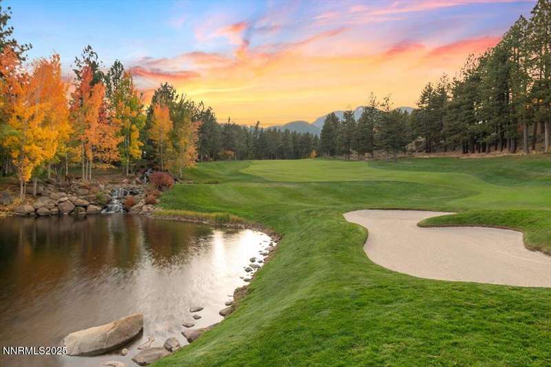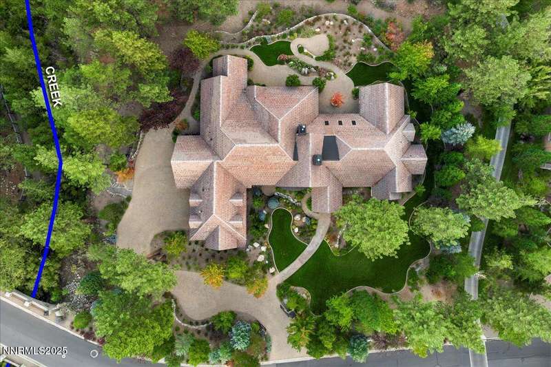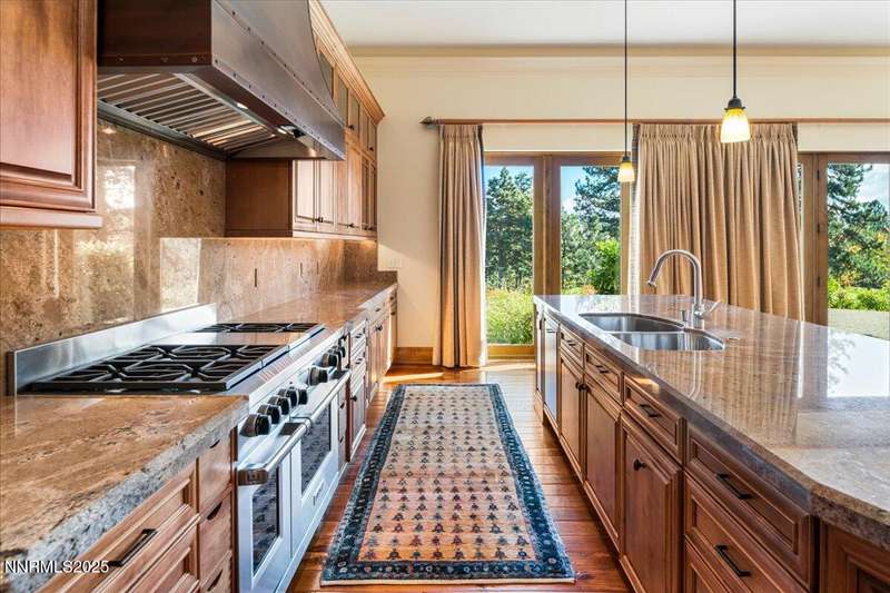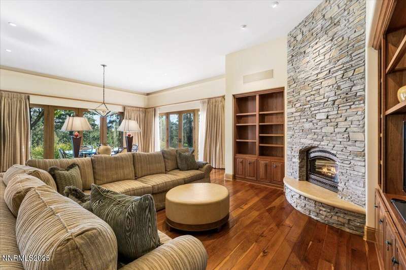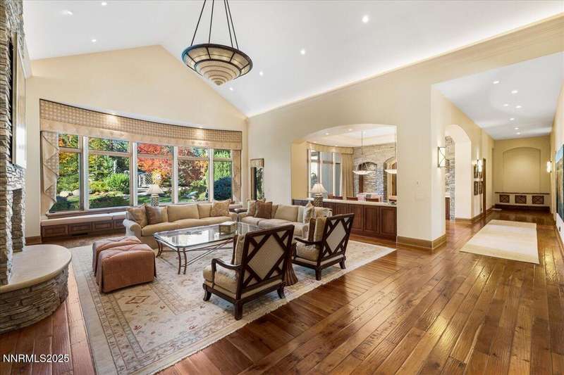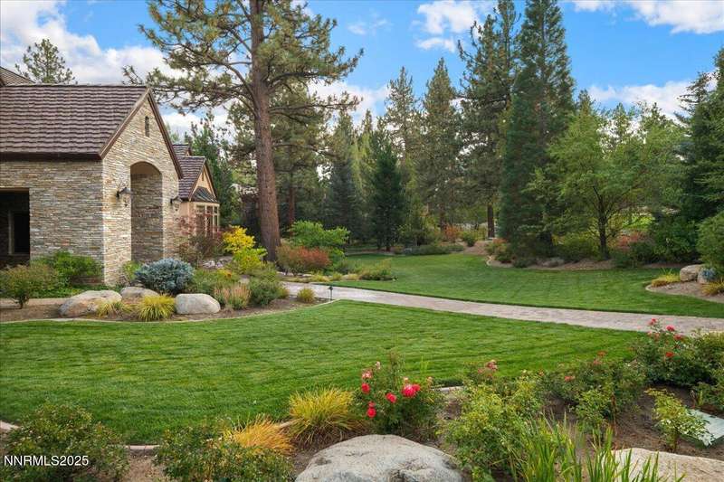 Nestled in the heart of Montreux Golf & Country Club, Reno's most prestigious gated community, 20000 Bordeaux is a timeless single-level estate offering unrivaled privacy and sophistication. Perfectly positioned on a rare double lot along Galena Creek, the property showcases spectacular views of four fairways framed by towering pines and park-like landscaping. Crafted with architectural excellence by Steve Sederquist and built by Neil Adams, this 7,888 sq. ft. residence blends elegant European-inspired design with effortless livability. Inside, soaring ceilings, wide hallways, and expansive windows create a light-filled, open layout ideal for entertaining and everyday comfort. The gourmet kitchen features Sub-Zero, Wolf, and Miele appliances, custom copper hood, and butler's pantry, opening to a warm family room with golf course views. The 930-bottle temperature-controlled wine room is a collector's dream. Luxurious finishes include ¾" solid cherry hardwood and marble floors, natural ledge stone, and 8' alder doors throughout. The primary suite is a serene retreat with steam shower, whirlpool tub, and unobstructed eastern course views. Three additional en-suite bedrooms, and an exercise room provide flexibility and comfort. The heated 2,300 sq. ft. garage offers capacity for 5+ vehicles and extensive storage. Just one block from the Montreux Clubhouse and amenities, this extraordinary estate epitomizes luxury living in Northern Nevada's finest golf community.