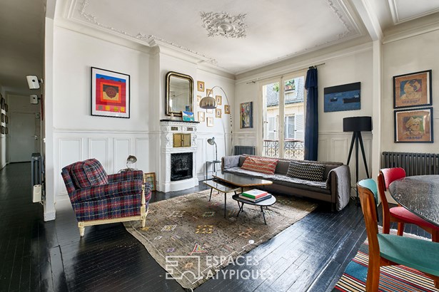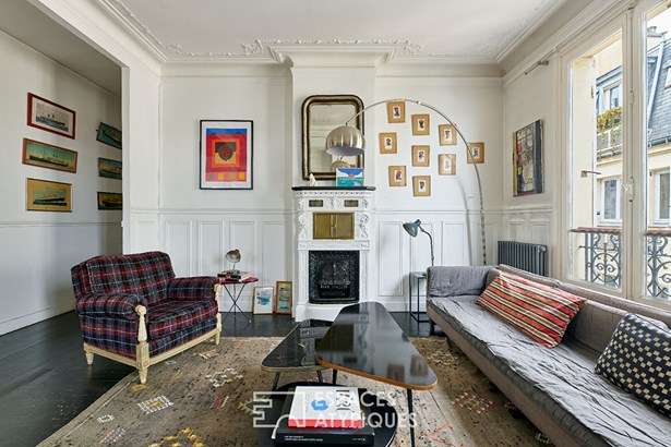 Located in the 18th arrondissement, bordering the 9th and 10th, this 72.17 sqm Carrez apartment unfolds its rooms in a series of interconnected spaces, all facing east and overlooking the courtyard.