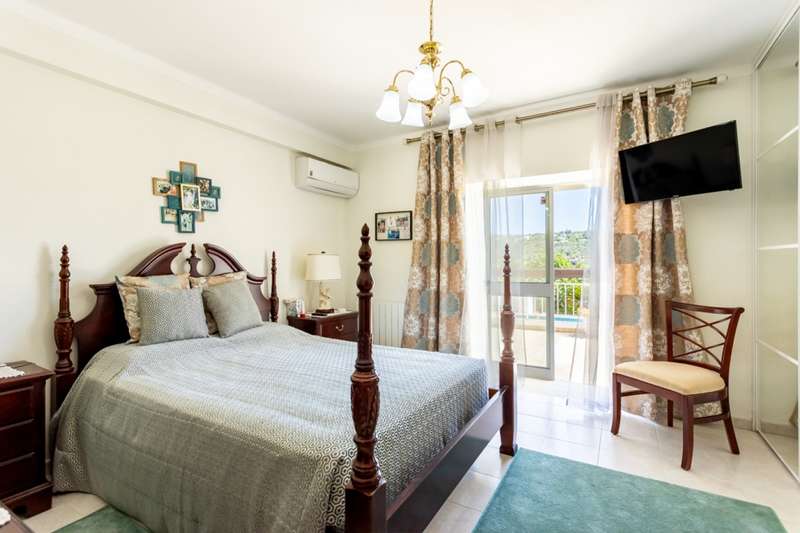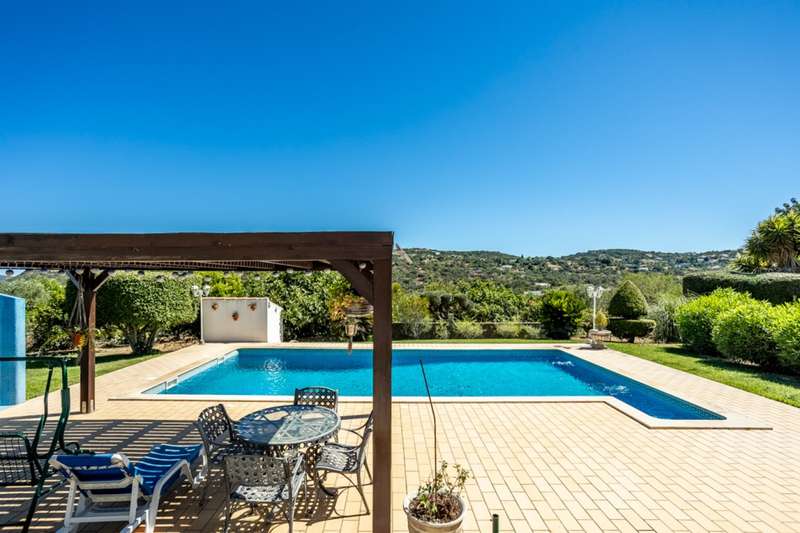 Spacious single-storey 3-bedroom house with swimming pool and green spaces, for sale in the quiet village of Vilarinhos in São Brás de Alportel, Algarve, Portugal. This spacious detached villa offers stunning panoramic views of the Algarve mountains, ideal for those seeking a haven of peace and comfort. The property consists of 6 rooms: 3 bedrooms, one of which is a spacious suite, several living and dining rooms in open space with the kitchen, an office and a laundry room. Outside, there is a beautiful, well-kept south-facing garden with a swimming pool and barbecue area, perfect for enjoying sunny days with friends and family. As a complement, the property has an automatic gate, a double garage with ample space to park two cars and is equipped with air conditioning, solar panels and central heating. Located just 10 minutes from the center of São Brás de Aportel, as well as the town's amenities, and 30 minutes from Faro International Airport. CHARACTERISTICS: Plot Area: 2 480 m2 | 26 695 sq ft Area: 480 m2 | 5 167 sq ft Deployment Area: 378 m2 | 4 068 sq ft Building Area: 378 m2 | 4 068 sq ft Bedrooms: 3 Bathrooms: 3 Garage: 2 Energy efficiency: C FEATURES: Single storey house Detached 3 bedrooms Mountain views Swimming pool Barbecue area Garden Solar panels Air conditioning