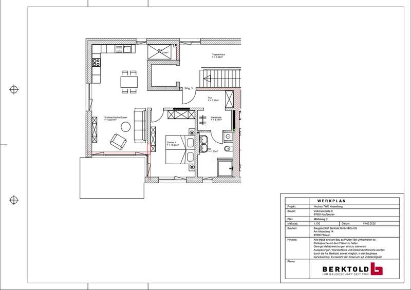 We offer you an exclusive, aesthetically pleasing 2-room new-build apartment in a prime location in Kaufbeuren with a balcony and 2 underground parking spaces. The apartment is located on the 1st floor Consisting of 1 bedroom, a spacious living - dining area with direct access to the balcony, a bathroom and checkroom area. The high-quality construction and furnishings should be emphasized. The high energy standard and thus the very low heating costs characterize this property. The building is heated by an air-to-water heat pump and the peak load is covered by a gas boiler. All living spaces are heated by underfloor heating. The modern bathroom is equipped with an acrylic shower channel, porcelain washbasins, WC, towel rail, bath towel holder, paper roll holder, mirror and washing machine connections. In addition to the apartment price, two underground parking spaces are available for € 25,000 each. Here you have the chance to realize your dream home in a top location. Completion of the apartment is planned for the end of 2025. If you are interested, we look forward to hearing from you. The illustrations are non-binding. Further apartments are available.