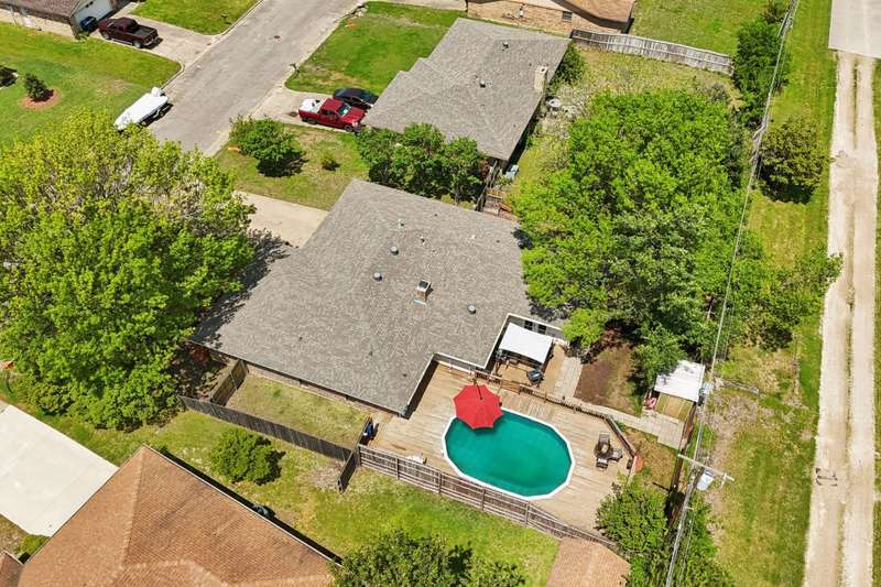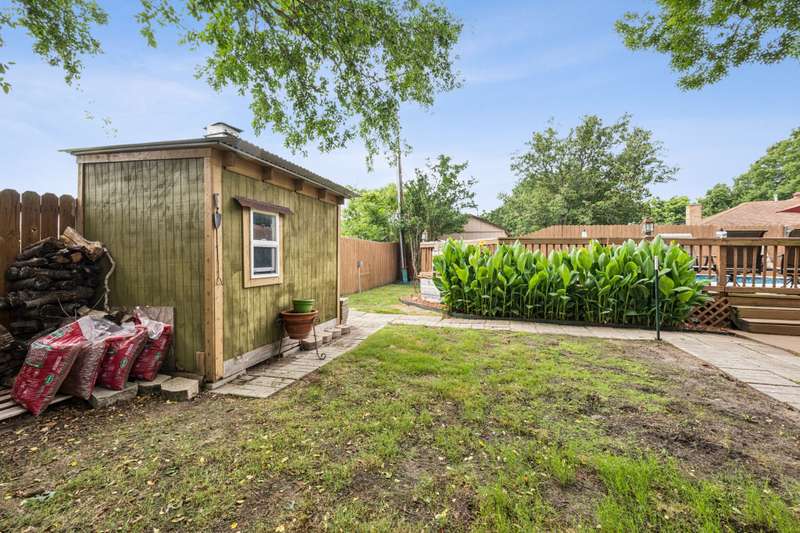 No HOA + Pool + Flexible Living Spaces!Welcome to this move-in ready gem, tucked away in a well-established neighborhood with no HOA and your very own private pool! This spacious home offers an incredible floorplan with 3 bedrooms, a formal dining room, office nook, and a huge second living area perfect for a game room, home gym, guest suite, or whatever fits your lifestyle. With its own separate entrance off the pool, this bonus space opens the door to endless possibilities. Inside, you'll find fresh paint, easy-to-maintain flooring, and thoughtful design touches throughout. The main living room features a cozy brick fireplace, ideal for movie nights or entertaining. The updated kitchen is a standout with a long island, dual ovens, butcher block countertops, a farmhouse sink, ample cabinet storage, a walk-in pantry, and a charming coffee cubby. The dining room is generously sized for large gatherings and includes a spacious closet for extra linens and dishware. Just off the dining space, an office nook with an original brick accent wall creates the perfect quiet work-from-home spot. The primary suite offers room to relax with a walk-in closet and private bath. Two additional bedrooms are filled with natural light and offer great closet space. The 2-car garage, fully fenced backyard, and dedicated dog run make this home both functional and fun. There's even a shed for lawn tools and a rock area ready for your next fire pit night!Extensive updates include:Foundation work with transferable warrantyNew electrical panelUpdated HVAC unitPlumbing upgrades and more!This home offers space, updates, character, and value all wrapped into one incredible property. Dont miss your chance to own this one-of-a-kind home with room to live, work, and play!