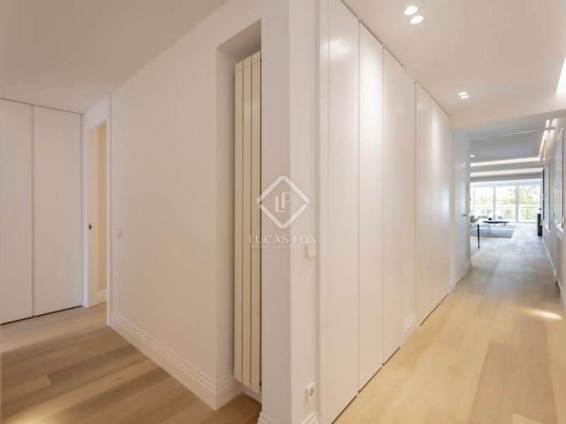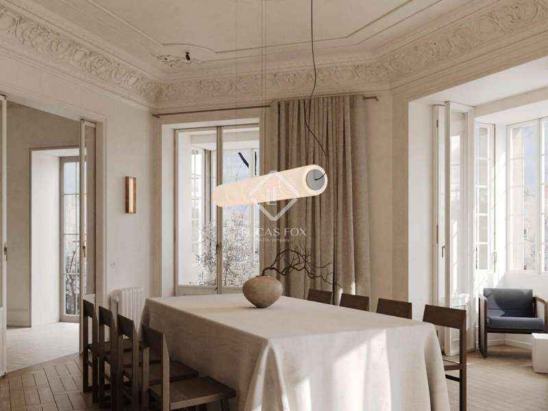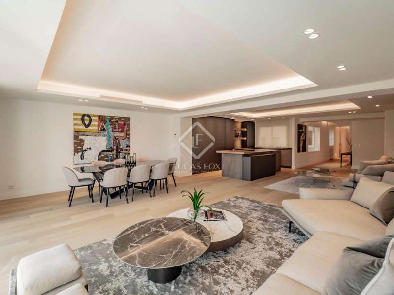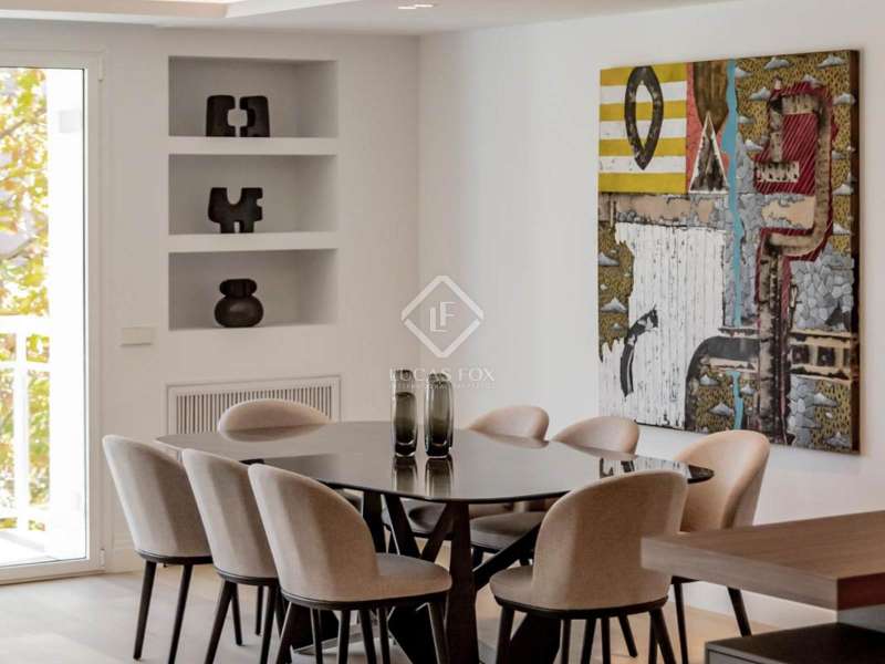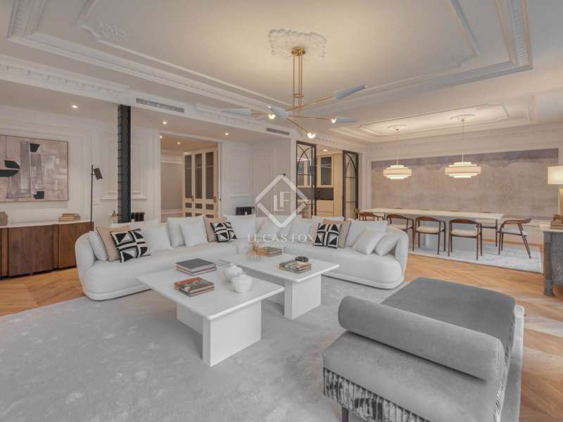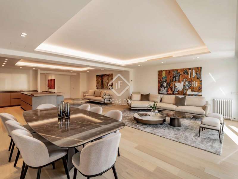 Lucas Fox presents this apartment located in the heart of Madrid, on the coveted Serrano street, located in the prestigious Salamanca district. This spacious 275 m² apartment on the fifth floor offers abundant natural light and panoramic views of the fascinating Lázaro Galdeano museum. It has a large living-dining room, kitchen and a living room that receive abundant light through a large five-leaf floor-to- floor window. A bright corridor leads to the laundry room and a guest room. In the bedroom area, there are three ensuite bedroom. It is completed with a parking space on the building with direct access by elevator.