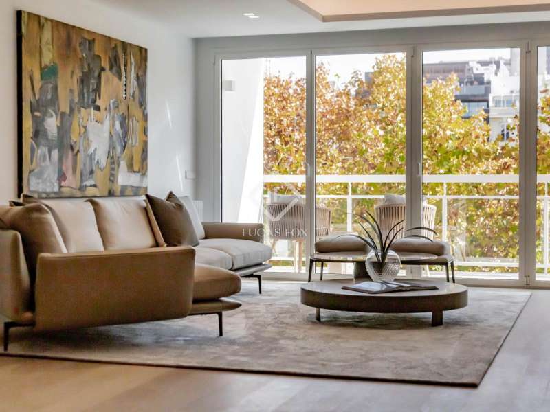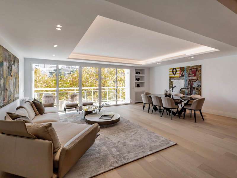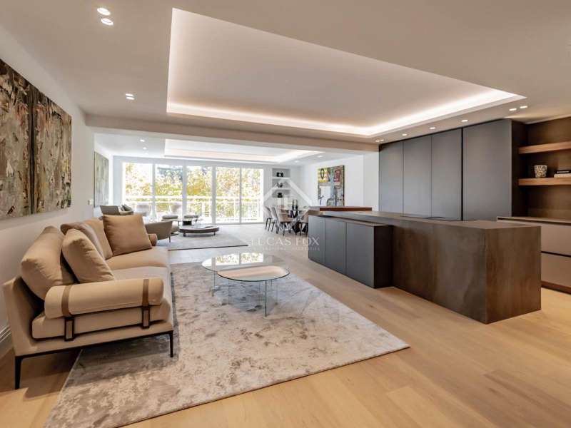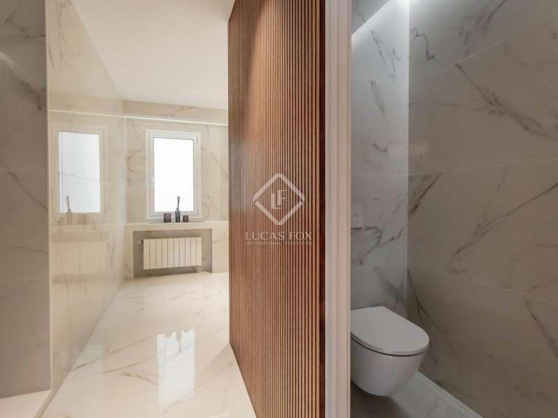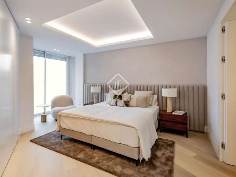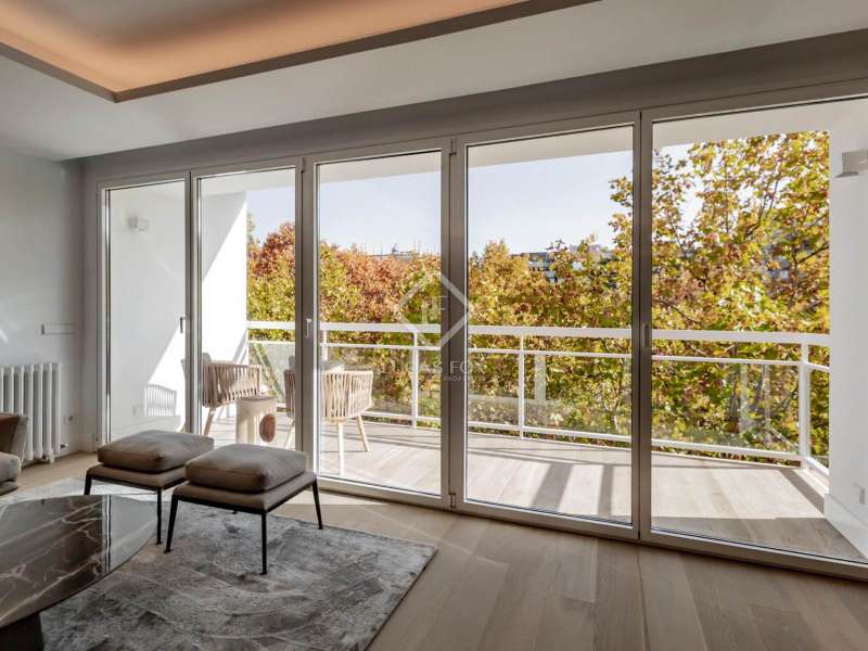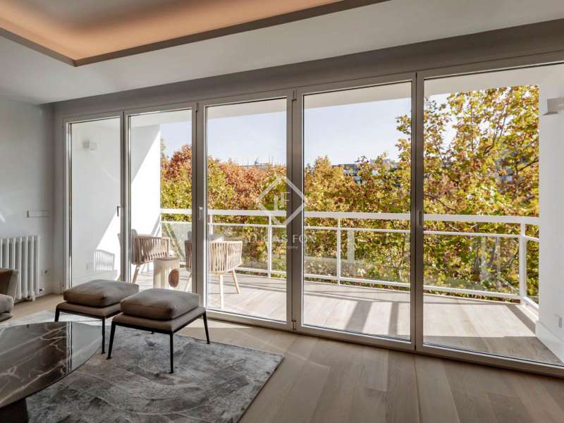 Lucas Fox presents this apartment located in the heart of Madrid, on the coveted Serrano street, located in the prestigious Salamanca district. This spacious 275 m² apartment on the fifth floor offers abundant natural light and panoramic views of the fascinating Lázaro Galdeano museum. It has a large living-dining room, kitchen and a living room that receive abundant light through a large five-leaf floor-to- floor window. A bright corridor leads to the laundry room and a guest room. In the bedroom area, there are three ensuite bedroom. It is completed with a parking space on the building with direct access by elevator.