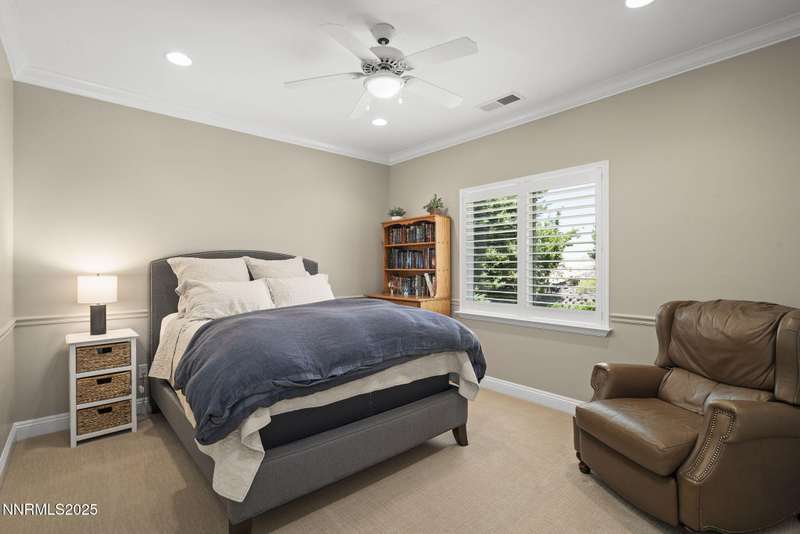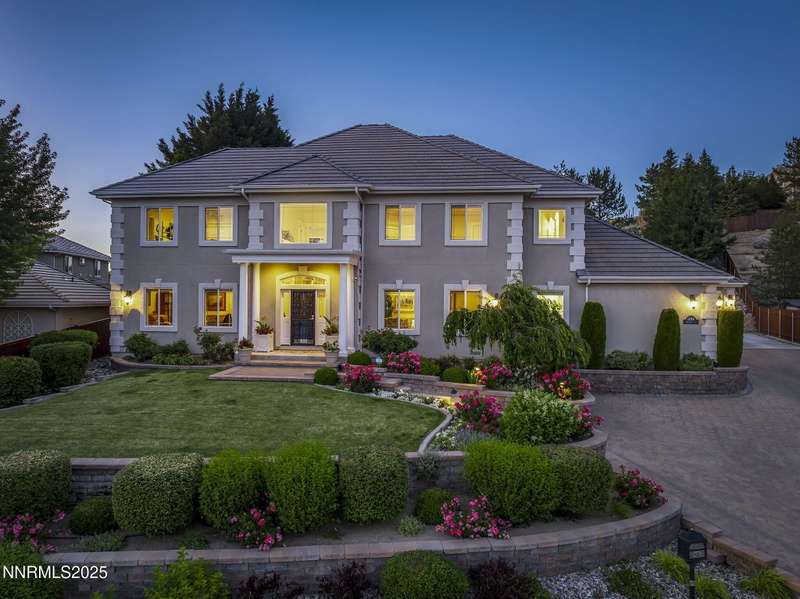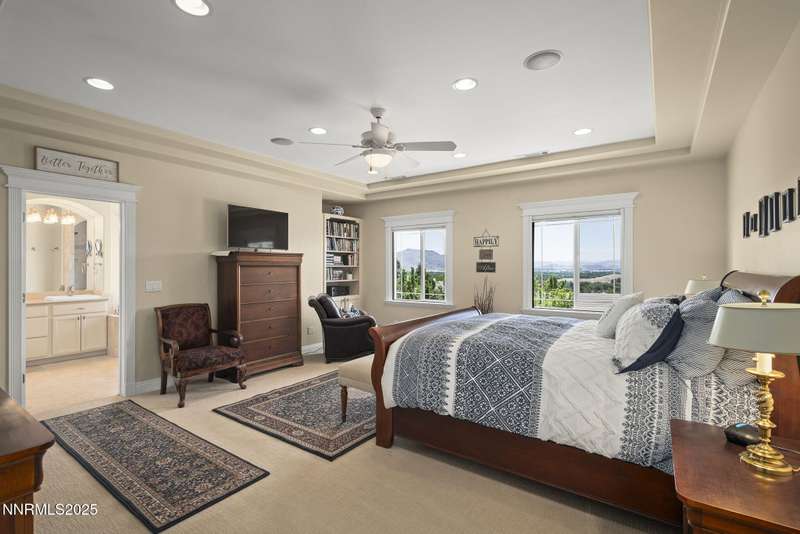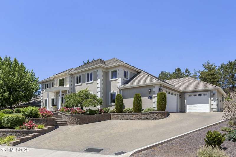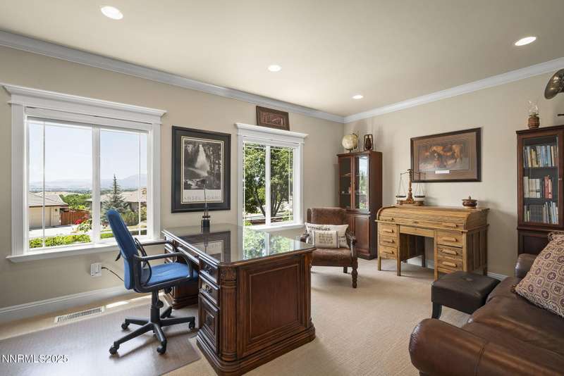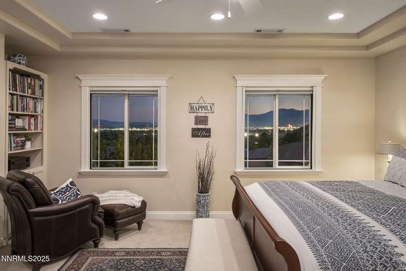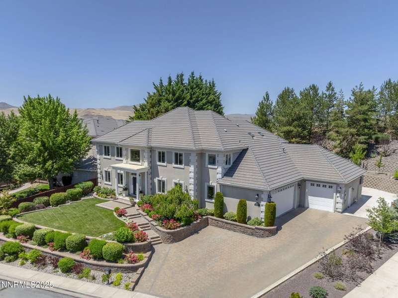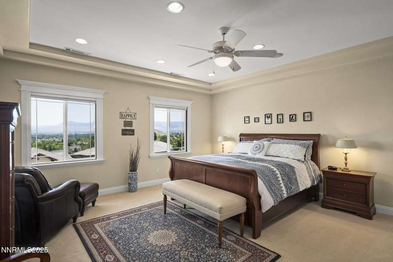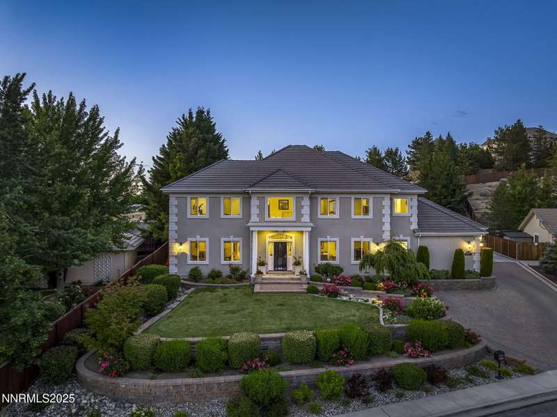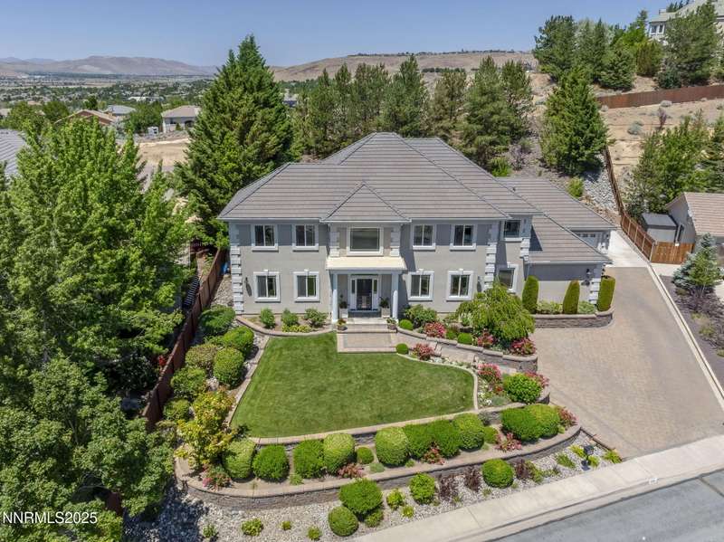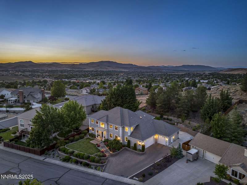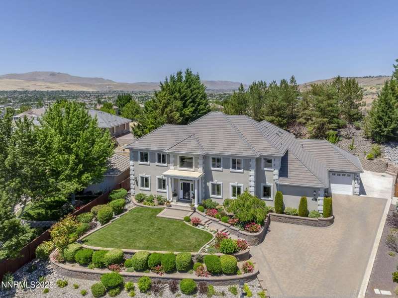 Tucked away on a peaceful cul-de-sac, this luxurious custom home offers the perfect blend of comfort, elegance, and functionality. Set on a beautifully landscaped half-acre lot, this immaculate home boasts stunning views of the city and mountains. Designed with the needs of a family in mind, it features generously sized bedrooms, an additional ensuite, an amazing laundry room with extra storage, and a great room with sound-insulated walls. Spacious, yet cozy, enjoy music or movies over the built-in speakers in the family room, living room, great room, patio, or primary suite-which enjoys gorgeous views and serves as a place to escape the bustle of the day to relax and recharge and enjoy a restful night's sleep. Quality abounds with thoughtful upgrades like custom window and door trims, upgraded carpet, hardwood and travertine flooring, central vac, expansive storage room, low-profile swamp cooler in a true 4-car garage, and insulated walls throughout. Step outside to a secluded patio, paver driveway, garden boxes, and plenty of outdoor space. There are no HOA fees and you're just minutes from shopping and amenities. Additional key features include: Additional Ensuite Bedroom, No Creak I-Beams throughout, Hardwood Flooring, Travertine Tile, Venetian Plaster Walls, Separate office/study, Gas Fireplace with Blower, 1,486 s.f. Garage, Custom Window Treatments, Pella French Doors, Incredible Storage, New A/C/ Units, New Furnaces, RV Pad, Two Laundry Chutes, Upgraded Lighting, Custom Window & Door trims, crown molding, double garbage disposals, smart attic fan, basketball court with adjustable hoop.