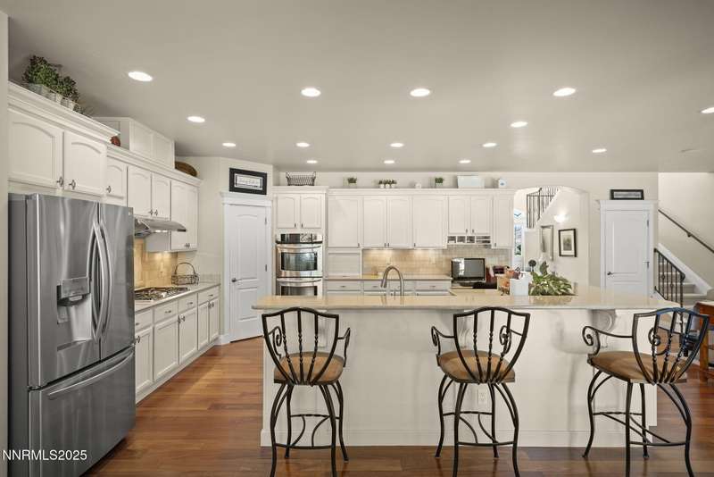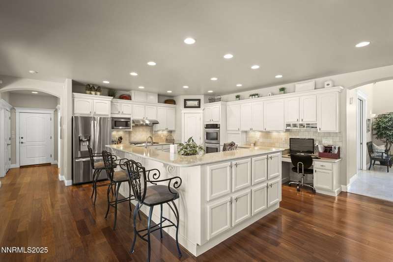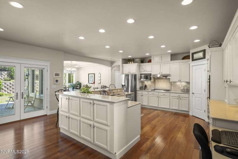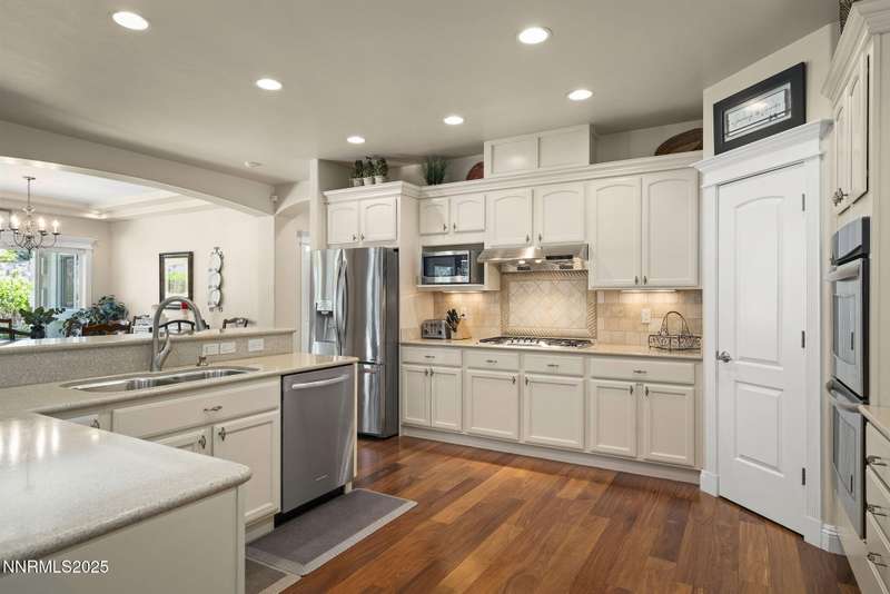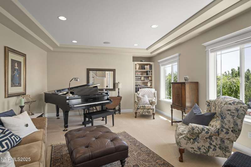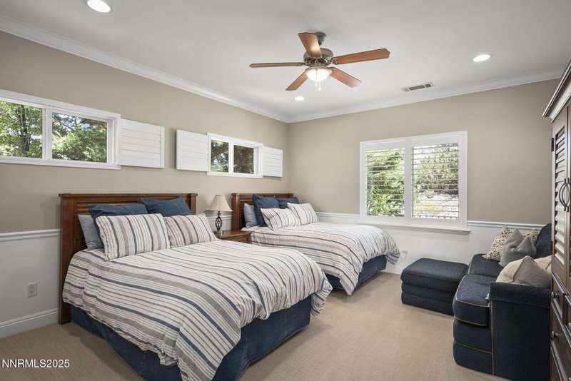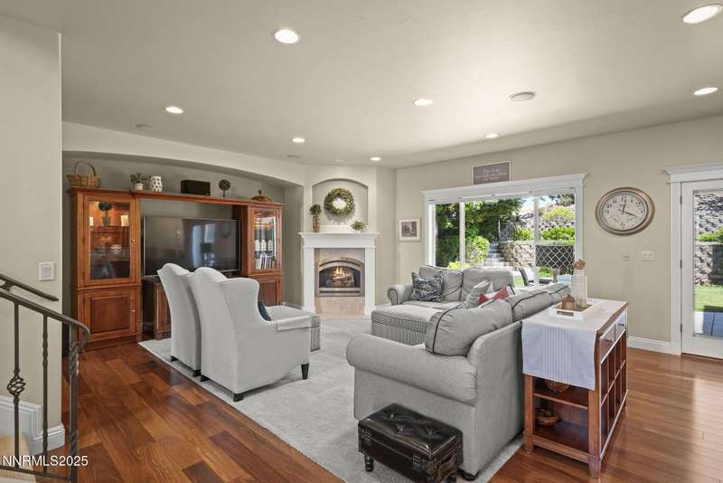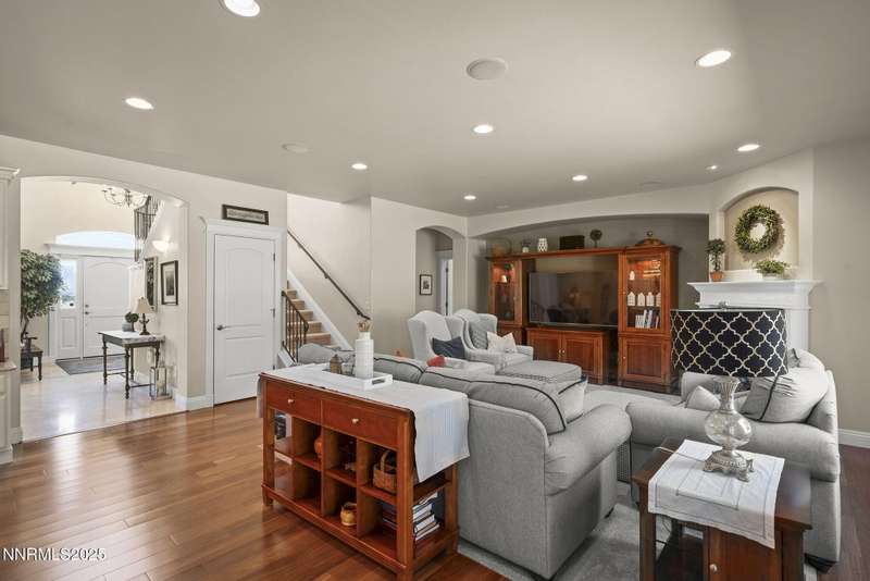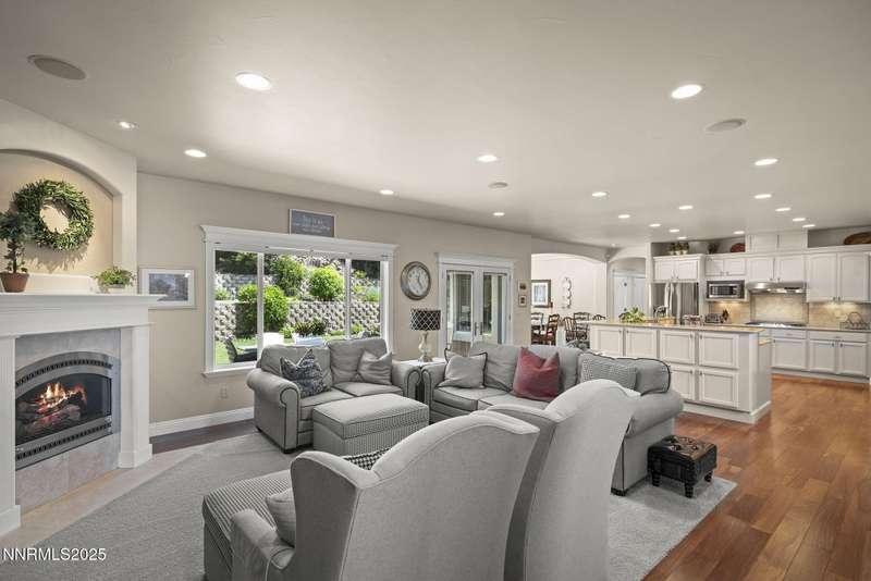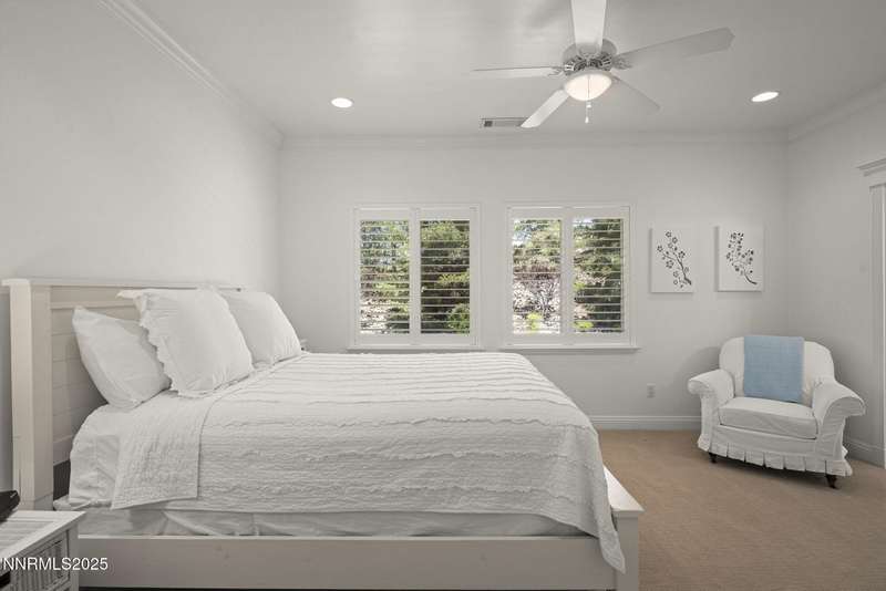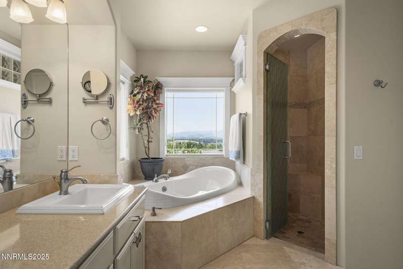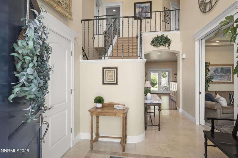 Tucked away on a peaceful cul-de-sac, this luxurious custom home offers the perfect blend of comfort, elegance, and functionality. Set on a beautifully landscaped half-acre lot, this immaculate home boasts stunning views of the city and mountains. Designed with the needs of a family in mind, it features generously sized bedrooms, an additional ensuite, an amazing laundry room with extra storage, and a great room with sound-insulated walls. Spacious, yet cozy, enjoy music or movies over the built-in speakers in the family room, living room, great room, patio, or primary suite-which enjoys gorgeous views and serves as a place to escape the bustle of the day to relax and recharge and enjoy a restful night's sleep. Quality abounds with thoughtful upgrades like custom window and door trims, upgraded carpet, hardwood and travertine flooring, central vac, expansive storage room, low-profile swamp cooler in a true 4-car garage, and insulated walls throughout. Step outside to a secluded patio, paver driveway, garden boxes, and plenty of outdoor space. There are no HOA fees and you're just minutes from shopping and amenities. Additional key features include: Additional Ensuite Bedroom, No Creak I-Beams throughout, Hardwood Flooring, Travertine Tile, Venetian Plaster Walls, Separate office/study, Gas Fireplace with Blower, 1,486 s.f. Garage, Custom Window Treatments, Pella French Doors, Incredible Storage, New A/C/ Units, New Furnaces, RV Pad, Two Laundry Chutes, Upgraded Lighting, Custom Window & Door trims, crown molding, double garbage disposals, smart attic fan, basketball court with adjustable hoop.