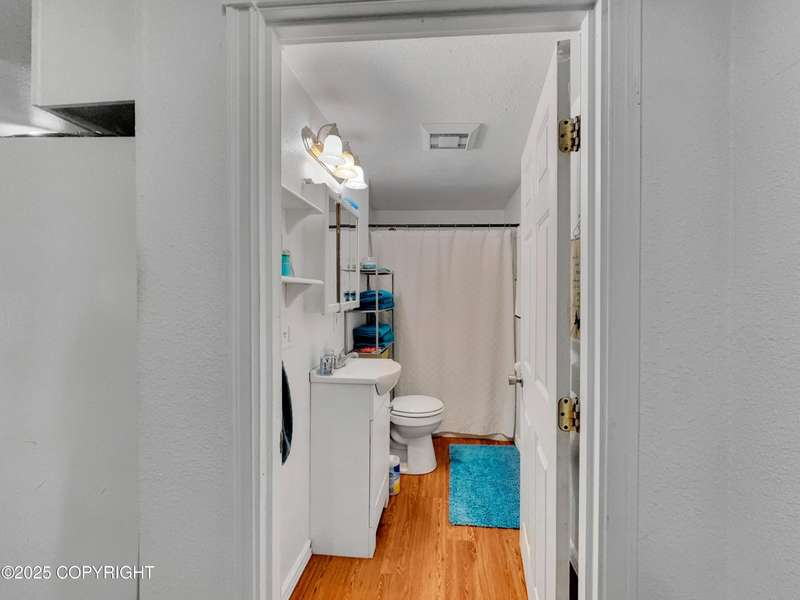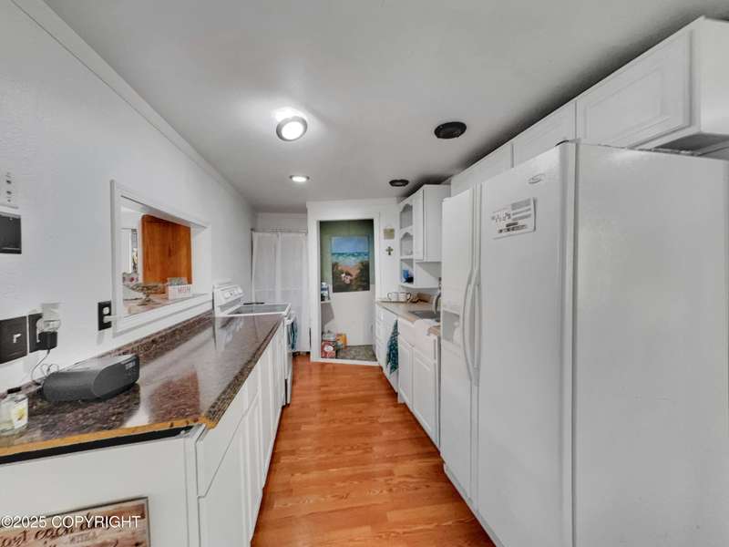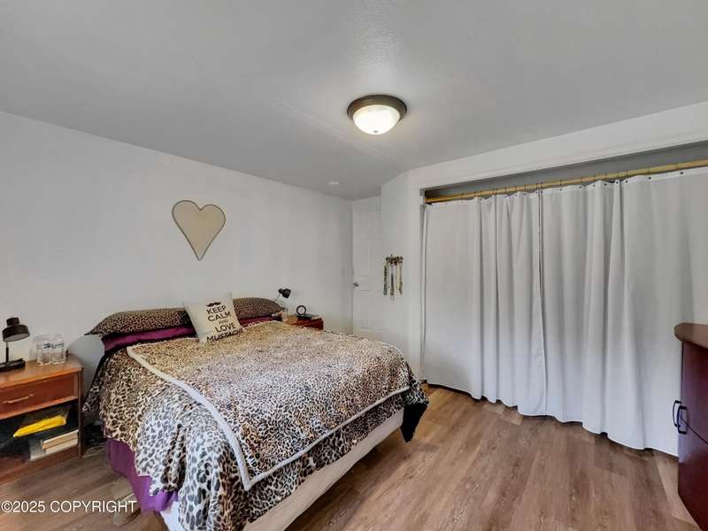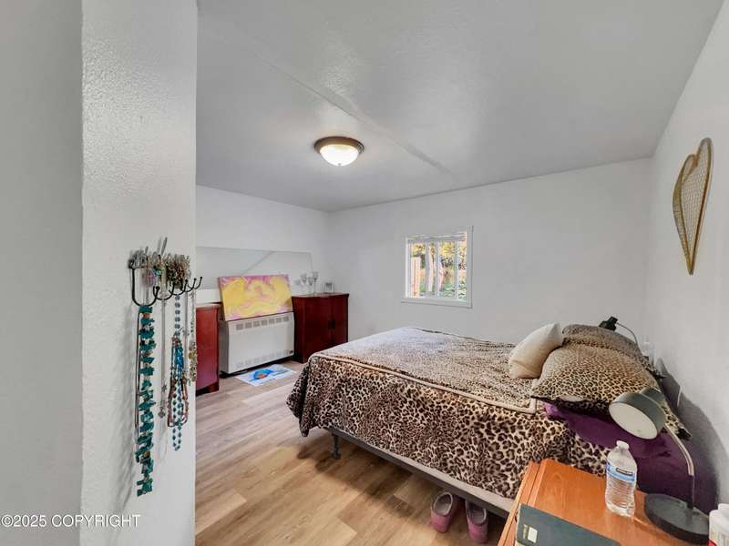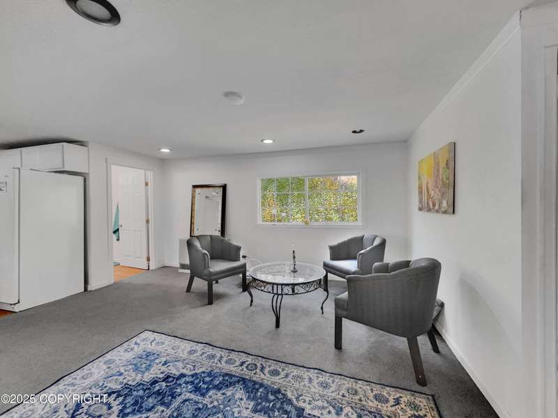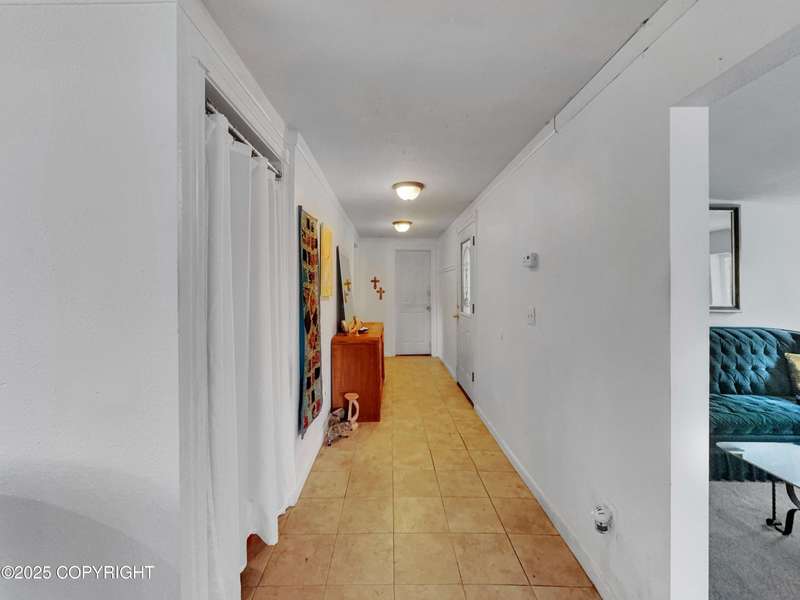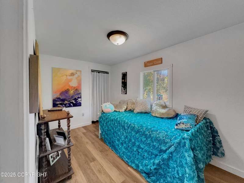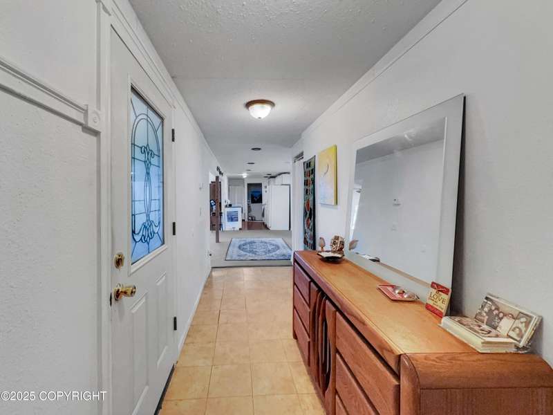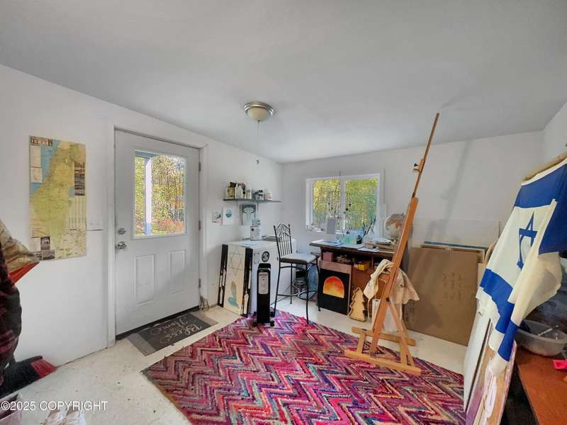 Freshly painted and move-in ready, this cozy 2-bedroom, 1-bath manufactured home sits on a full acre and combines comfort with convenience. The arctic entry provides plenty of storage for all your Alaskan winter gear. The spacious living and dining area filled with natural light, creating a warm and welcoming atmosphere. Step outside to your own private retreat the sunny backyard feels like a secluded getaway in the woods, perfect for relaxing on the back porch with coffee and a good book, growing your own fresh vegetables or entertaining. Leaving plenty of space on the property to add a garage or shop. Enjoy the privacy of a wooded setting while still being in a great commute location and just minutes from shopping and local amenities. Seller has recently repainted, and installed new carpet in living area and LVP in bathroom, kitchen and bedroom. Added electricity to the shed, painted the whole exterior with shed to match, added covered front and back porch. Cash sale, possible owner finance with very large down.