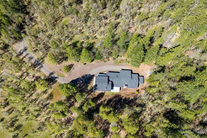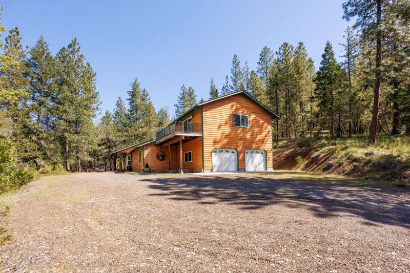 Absolutely peaceful forest sanctuary on East Evans Creek! This special property features gated entry over the creek, 60+ gpm well, 9.75 ac of manicured forest, rain system w/ 500 gal holding tank for gardening, and a home perfectly situated to take full advantage of the privacy and views. Custom built in 2001, the 3 bed, 2 bath mostly single level home w/ split floor plan includes an additional large bonus room above the garage, complete with wood stove, sink, lots of light, and breathtaking mountain panorama from the balcony. Open living area on main level boasts inviting river rock fireplace, cozy window seat, spacious kitchen, and plenty of room to entertain. Efficiently functional utility room with storage, extra pantry, sink, and laundry facilities, accessible dog pen, and conveniently accessed from the oversized garage equipped with 220V, workbenches, and room to store tools. Don't miss out on this beautiful wooded retreat!