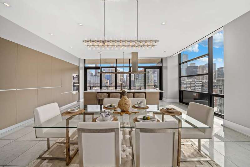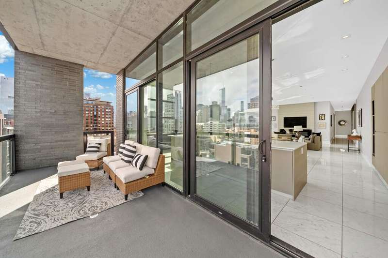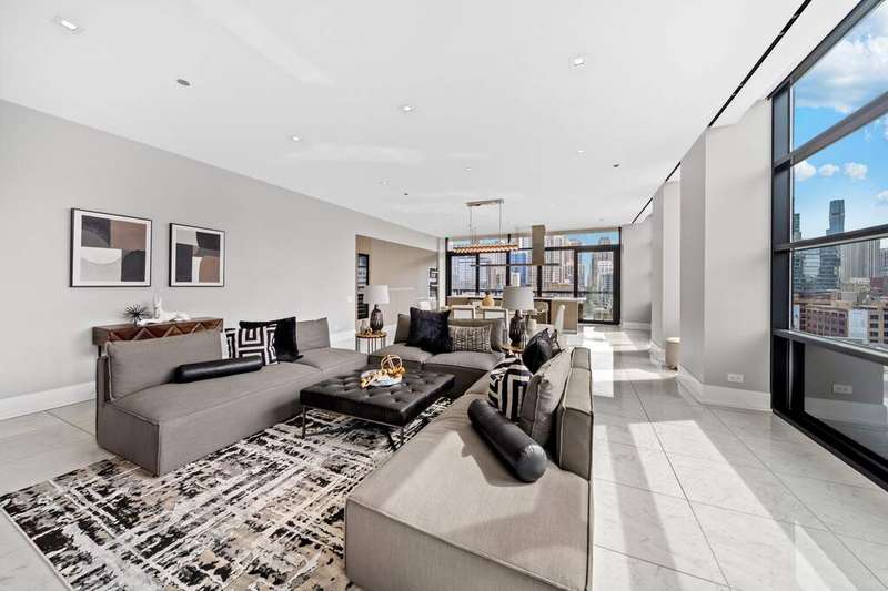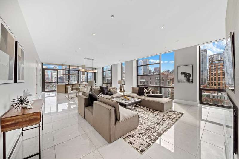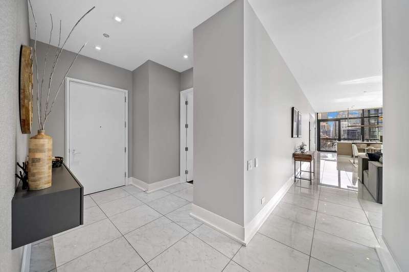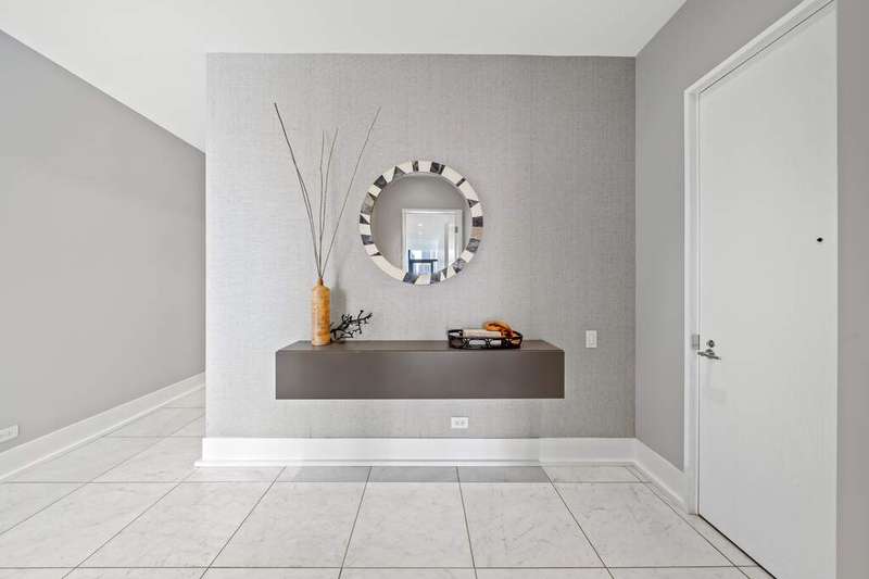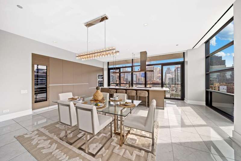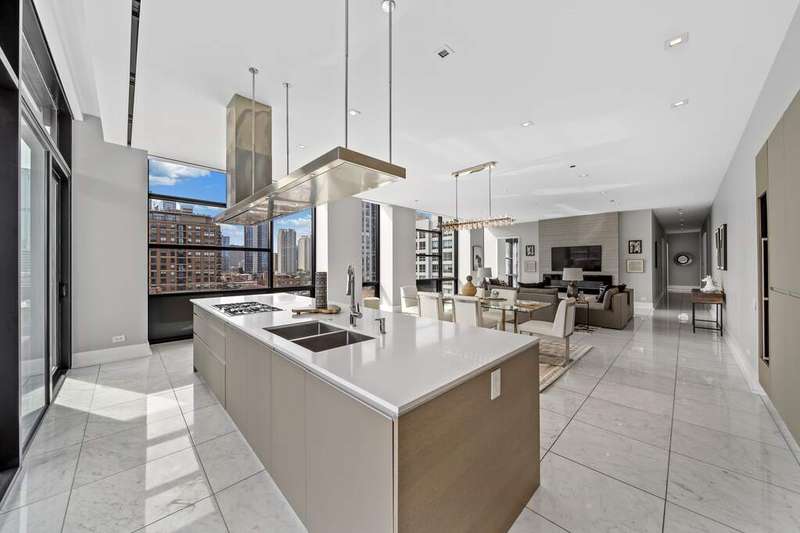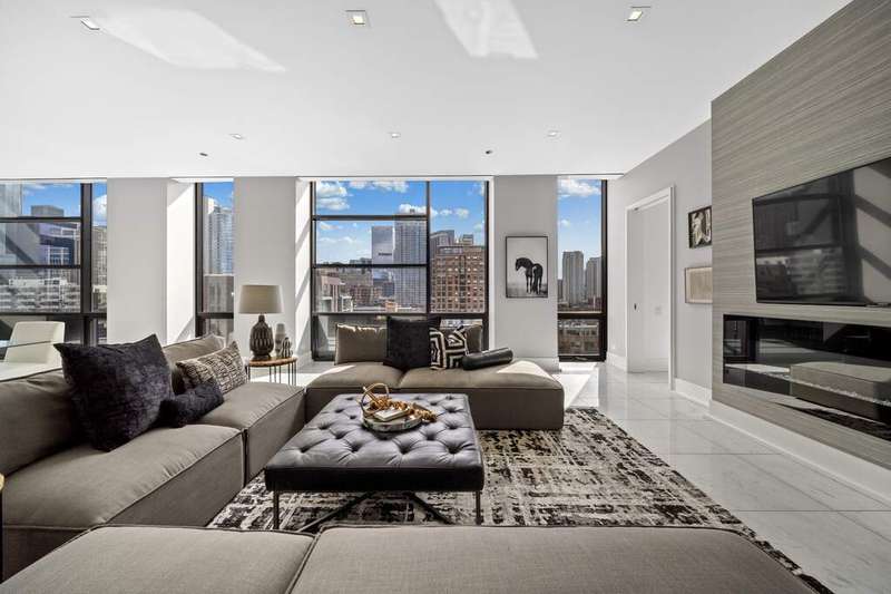 Step into a world of refined luxury where every detail has been curated for those who demand more than just a place to live-they demand a lifestyle. This exquisite residence in a boutique River North building is a symphony of marble, light, and modern design. The sprawling floor plan, featuring 3 bedrooms plus home office and 2.5 baths, truly offers an escape above the city yet firmly anchored in its energy. Enter through a marble-clad foyer with custom storage that sets the tone for a home designed with both elegance and ease in mind. The expansive living and dining spaces flow effortlessly, wrapped in floor-to-ceiling south-facing glass that drenches the interiors in light while framing Chicago's skyline in cinematic fashion. An electric fireplace adds warmth and intimacy, while the dining area opens onto an east-facing balcony-perfect for morning coffee with the sunrise. The custom designed Valcucine kitchen is a study in sleek functionality: quartz-clad island seating four, integrated Miele appliances including a five-burner cooktop, convection microwave, and beverage refrigerator, all framed by polished chrome fixtures and a powerful Max Fire hood. Retreat to a primary suite that redefines indulgence-two balconies with both south and east exposures, a walk-in closet plus three additional closets with organizers, and a spa-caliber bath featuring a soaking tub, dual vanities, rainfall shower with bench seating, and a separate marble-clad water closet. Two additional bedrooms provide sanctuary for guests or family, each with floor-to-ceiling windows and customized storage; one enjoys a marble ensuite bath, the other easily pairs with an elegant sitting room/office anchored by marble floors. A powder room, full laundry room with Samsung washer/dryer and cabinetry, and thoughtful built-ins throughout underscore the commitment to both beauty and function. Private 2 car heated garage, temperature-controlled wine storage, and spacious storage closet complete this home. All of this in a sought after building complete with 24/7 concierge, covered & heated dog run, bicycle storage, elite-level fitness facility, security team, and more! Extraordinary location offers easy proximity to all that the area has to offer; world class dining, retail and culture, as well as transportation, river access, Ogden Elementary, and so much more! Set within an intimate building known for privacy, this residence is not just another River North condo-it's a stage for a life well lived, where boutique luxury meets world-class city living.