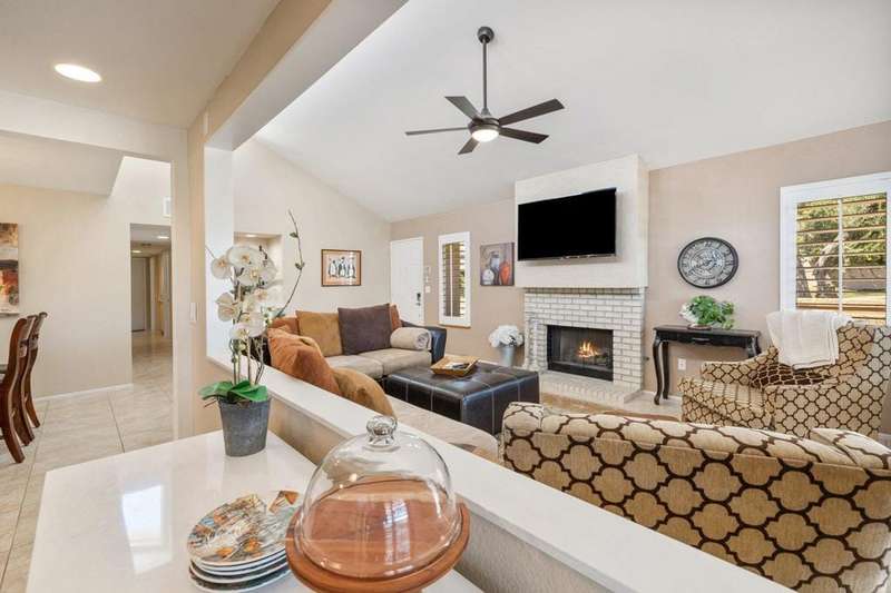 Desert Living at Its Finest!Welcome to this beautiful condo located in the gated Casablanca community--a perfect blend of comfort and desert elegance. This bright and airy home features vaulted ceilings in the main living area, flooding the space with natural light and seamlessly connecting indoor and outdoor living.The floor plan includes 3 bedrooms and 2 bathrooms, including a spacious master suite with a walk-in closet. The two additional bedrooms offer flexibility for guests, a home office, or a cozy TV room.The dining area is conveniently located just off the kitchen and flows into the expansive living room, creating the ideal layout for entertaining or relaxing.Step outside to enjoy your private patio, just steps away from a heated pool and spa. Across the street, you'll find tennis and pickleball courts, with four community pools and spas available for all residents to enjoy.Located just a short drive from top-tier golf courses, El Paseo shopping and dining, and The River entertainment district, this home offers the best of desert living.Pack your bags for your next vacation!
