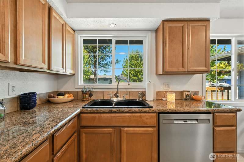 Beautifully updated West Longview Home on a large fenced corner lot! Pristine home boasting 4 bdrms, 2 bthrms, formal living rm & dining rm, remodeled kitchen w/new cabinetry-granite countertops-tile floor-breakfast eating area-SS appls, spacious family rm w/slider to expansive new deck & elegant metal railing for entertaining, primary bdrm w/ensuite & slider to deck, laundry rm, New: 30 year architectural roof-cement plank siding-interior & exterior paint-gutters-luxurious carpeting-vinyl windows & light fixtures, attached 2 car garage w/ample storage & inviting new entry deck w/wood railing! The grounds offer a fully fenced private back yard w/large gate for entry to back, beautiful flowers & shrubs, and a large Rubbermaid storage shed!