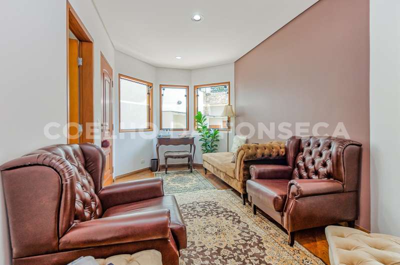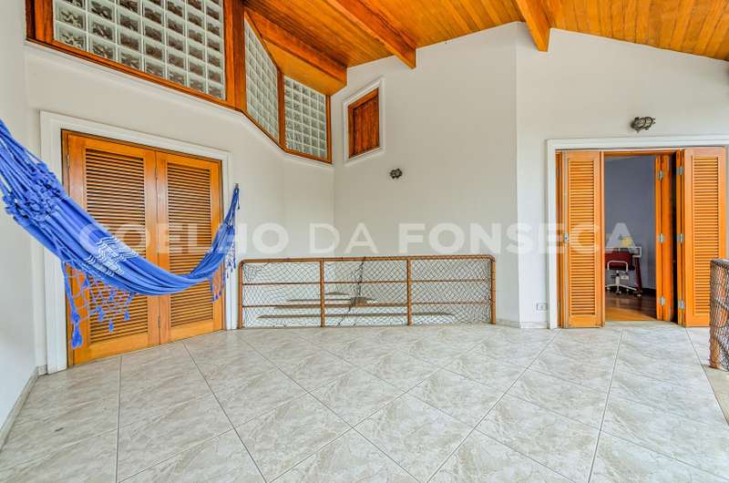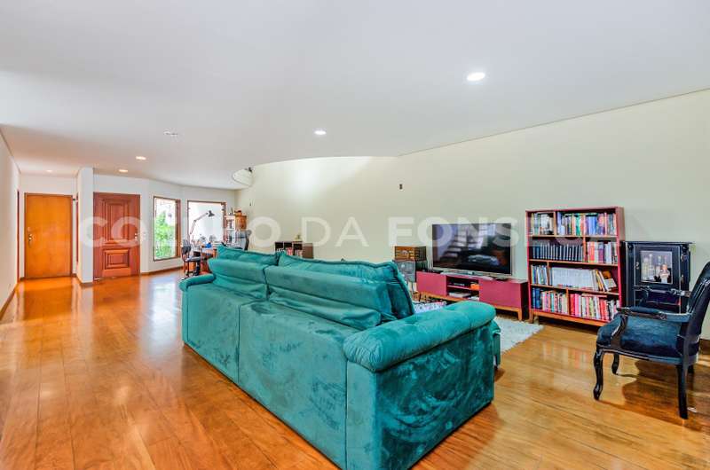 Belíssima e aconchegante casa, com living em pé direito duplo, o que lhe confere muita amplitude e luminosidade, anexo à varanda gourmet, com churrasqueira e piscina. No piso superior, 5 dormitórios, sendo 4 vagas, 4 vagas das quais 2 cobertas. Aquecimento solar. Localizada em rua tranquila e muito arborizada, próxima ao. Clube Sírio Libanês.