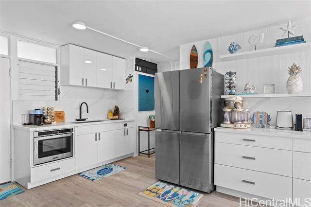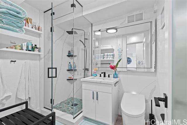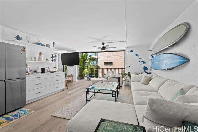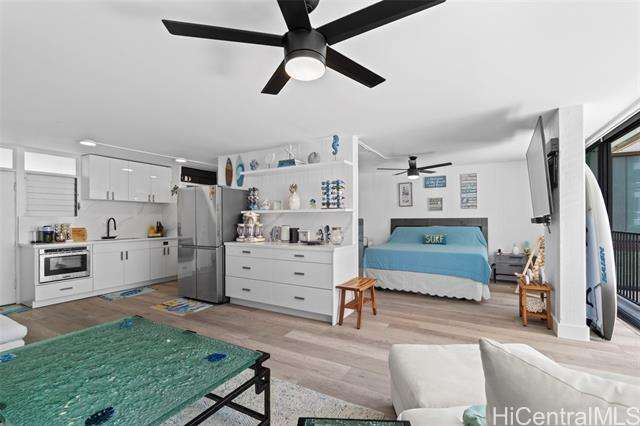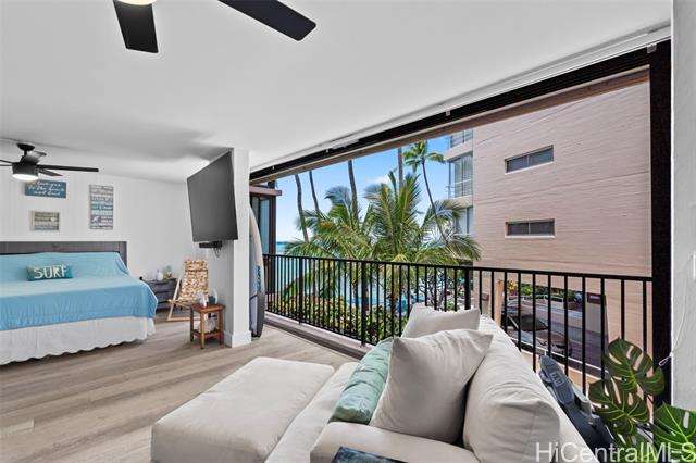 Newly renovated ocean view retreat on Oahu's Gold Coast is now available! Thoughtful and complete makeover....everything is new. If you are looking for a turnkey Gold Coast condo, welcome home! With all new electrical, Luton Caseta Smart home control, smart light fixtures, LG quartz countertops, Viking induction warmer, Viking microwave oven, Hansgrohe plumbing fixtures in kitchen & bathroom. Shower valve, head setup, floor drain, shower racks and towel racks are all Hansgrohe. Smart bathroom mirror, Toto Neorest bidet, new ceiling fans, new Cali Bamboo LTV floors, remote blinds and Fleetwood pocket doors. This unit looks & feels very comfortable. Dedicated parking stall #15 in front of building. Close to beautiful blue surf, fountain, Kapiolani Park and all that Waikiki/Honolulu has to offer, this is a slice of heaven....and it is here waiting for you to enjoy! Sale is contingent on Seller securing a specific replacement property.