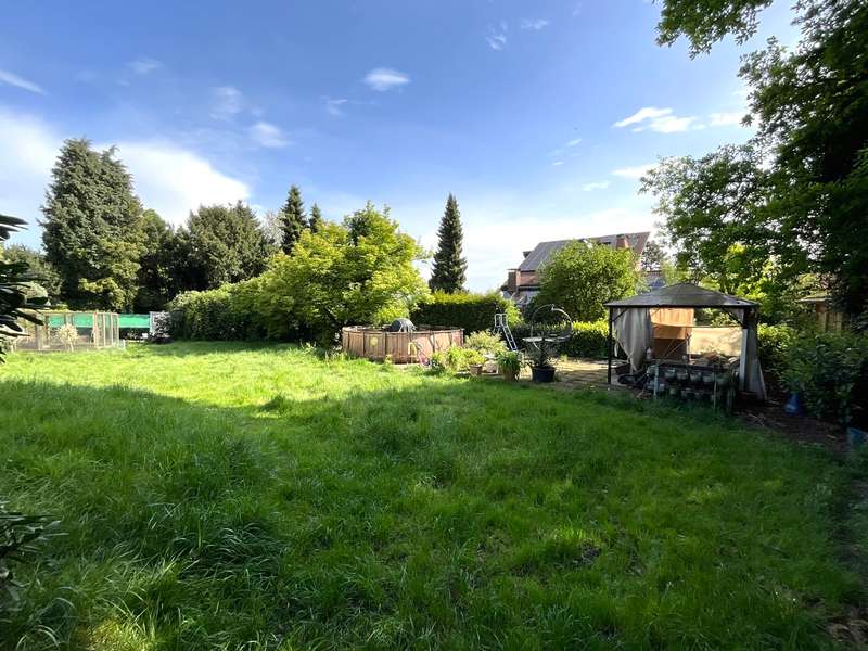This rented condominium forms the southern part of a two-family house built in 1965 and divided into partial ownership in a natural and preferred peripheral location of Hünxe. The living space extends over two levels, as the building is situated on a slope at the rear. The apartment also has additional cellar rooms. The first floor of the apartment is divided into hallway, checkroom, guest WC, kitchen with storage room and light-flooded living/dining room with access to the terrace. The second level offers three bedrooms with a view of the garden as well as a shower/bathroom and a separate WC. A few steps lead down to the basement area, which offers further usable space and access to the garden. The property impresses with its great, natural location on the edge of the forest. There is a special right of use to half of the approximately 2,645 m² idyllic plot with mature trees. A notable advantage is the separate heat supply to the residential unit via a modern gas central heating system (built in 2024). A garage space in the double garage on the property also belongs to the property. The apartment has been rented since May 2012. The annual net rent is € 10,200 including the garage space and plus ancillary costs. Conclusion: An individual property in a very good location!